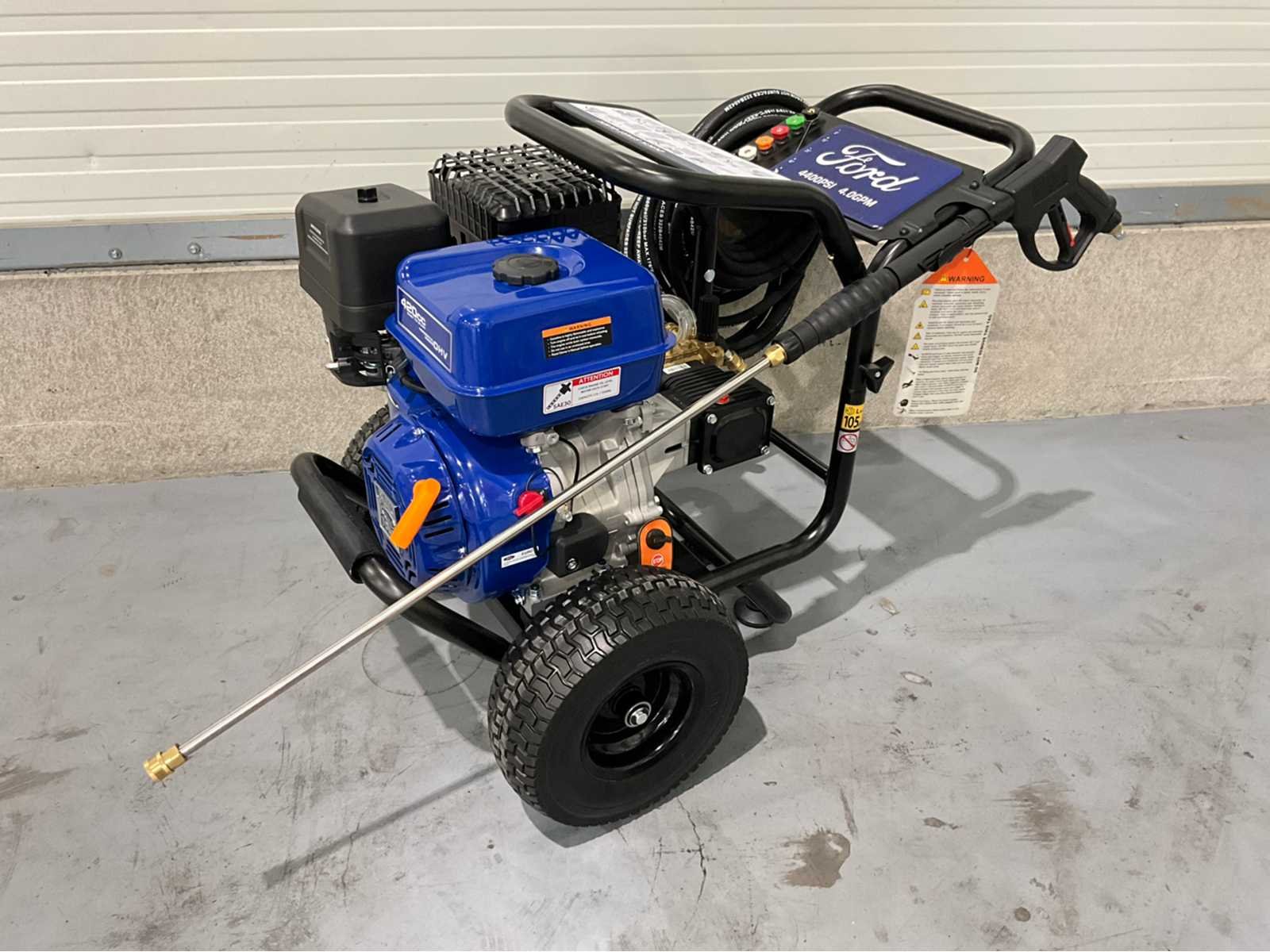 Ongebruikt * Fabrikant Ford * Productcode FPWG44T-UK * Max. druk 4400 psi (303 bar) * Max. debiet 15,9 L/min * Max. watertemperatuur 40°C * Netvoeding * Geschikt voor reinigingsmiddelen Ja - Inclusief doseerslang * Sproeiers 0°, 15°, 25°, 40° en zeepsproeier * Slanglengte 15 meter hogedrukslang * Brandstoftype Benzine * Brandstofcapaciteit 6 liter. 5 liter * Motortype kopklepper * Motorgrootte 420cc * Motorolie 10w30 * Gewicht 72,25 KG * Geluidsniveau op 7m 80 dB(A) * Afmetingen (BxHxL) 620 x 730 x 950mm Nee Merk: Ford Type: FPWG44T Bouwjaar: 2026 Maximale werkdruk: 300bar Mobiel: true Eigen gewicht: 72kg Totale afmeting L: 620mm Totale afmeting Breedte: 730mm Totale afmeting Hoogte: 950mm