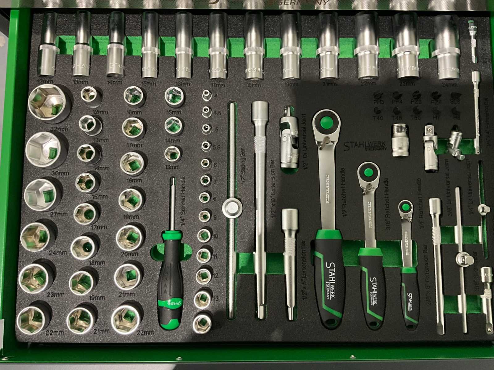 Ongebruikt , 3 stopcontacten , 2 usb poorten 13 stuks 1/4” doppen: 4-4,5-5-5,5-6-7-8-9-10-11-12-13-14mm 10 stuks 3/8” doppen: 13-14-15-16-17-18-19-20-21-22mm 14 stuks 1/2” doppen: 12-13-14-15-17-18-19-21-22-23-24-27-30-32mm 12 st. 1/2” dopsleutel: 12-13-14-15-16-17-18-19-21-22-24mm 3 stuks 1/4“ 3/8” 1/2” duwstang 3 stuks 1/4“ 3/8” 1/2” kruiskoppeling 2 st. 1/4“ maat 2” & 4” verlengstang 2 st. 3/8“ maat 3”&6” verlengstang 2 st. 1/2“ maat 5”&10” verlengstang 3 stuks 1/4“ 3/8” 1/2” ratelhandgreep 72T 1 st. 1/4“ snijhendel 1/2” Dr. koppeling 10 st. Bits PH3-4, PZ3-4, SL8, T40-45-50, H7-8; 12 st. 1/2” inbusbits maat: H14-17-19, M16, M9, MP9, M16, T80, M14, T40-45-50. 45 stuks 1/4” dopsleutels: SL4-SL5,5-... (en zo verder volgens uw lijst) 12 stuks 1/2” Pneumatische doppen: 10-11-12... (enzovoort) 9 stuks Lange inbussleutels: 1,5-2-2,5-... (enzovoort) 14 stuks schroevendraaiers: SL8*175-SL8*150-... (enzovoort) 7 stuks schroevendraaiers: SL6*38-SL5*100-... (enzovoort) 9 stuks. Flachringschlüssel:8-9-10-11-... (enzovoort) 21 stuks Kombischlüssel:6-7-8-9-10-11-... (enzovoort) 1 st. 8” verstelbare moersleutel 9 stuks schroevendraaiers: H2*100-5*150-... (enzovoort) 8 stuks T-Stecknuss:6-7-8-9-10-11-12-13mm 1 st. 8” combinatietang 1 stuk 8” naaldneuzen 1 x 8” zijkniptang 1 x 10” waterpomptang 1 x 10” vergrendeltang 1 stuk 7” binnenringtang recht 1 stuk 7” binnenringtang gebogen 1 x 7” buitenringtang recht 1 st. 7” buitenringtang gebogen 1 st. Meetlint 5 Nee Merk: Stahlwerk Type: SW 7 Bouwjaar: 2026 Aantal laden: 7 Met inhoud: true