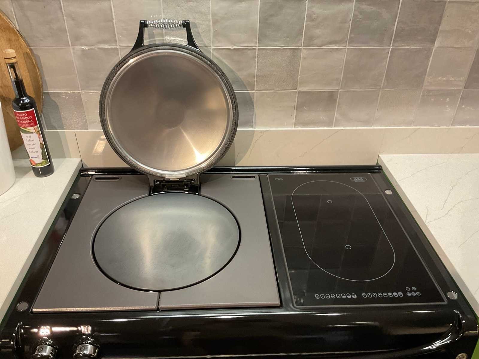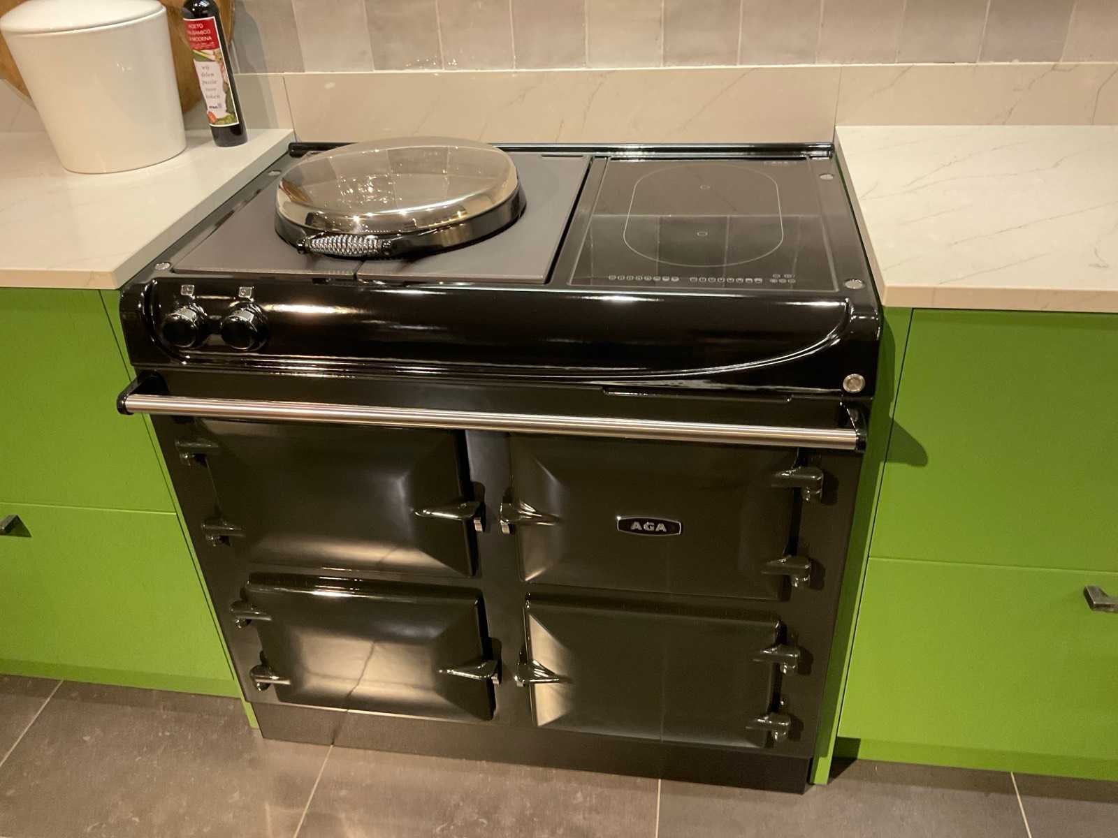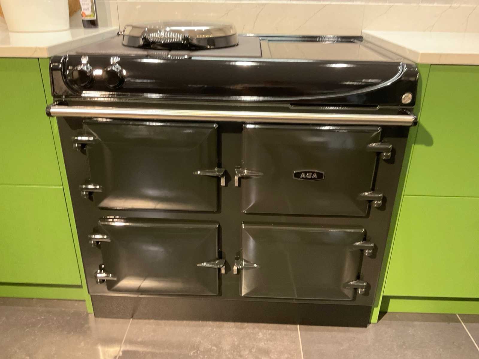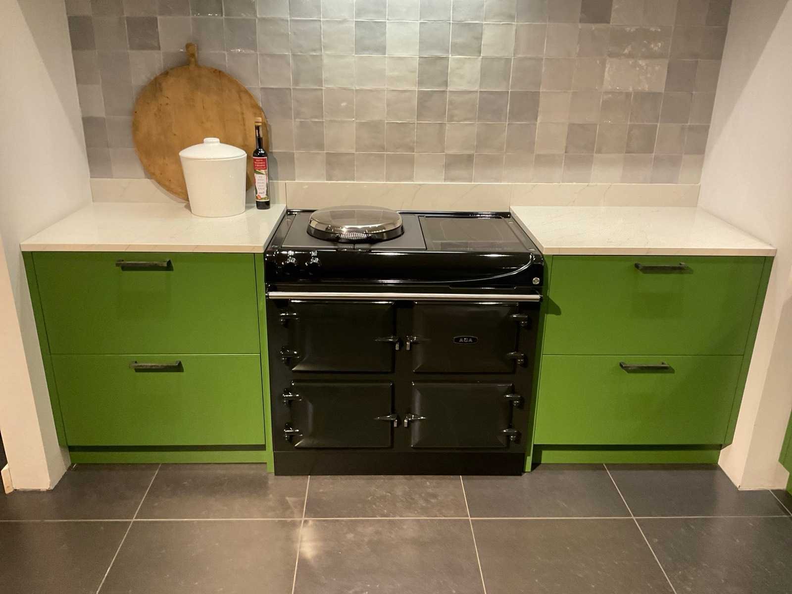 Wandopstelling 1 indeling: 2 ladenkasten met binnenlade: AGA 4-zone inductie fornuis; type 100-4/4i; met bak-braad en sudder ovens en grillplaat; 98 cm breed; Novy inbouw plafond afzuigunit; type 898; zonder de ombouw; wandopstelling 2 indeling: 2 onderkasten en 2 ladenkasten; Siemens inbouw vaatwasser; type SX63H800BE; 14 couverts; wandplank met kroonlijst en verlichting; afm. 260x30 cm; kastenwand indeling: 2 hoge kasten; 270 cm hoog; Siemens inbouw koelkast; type KI51FSD40; inhoud 222 liter; Siemens inbouw vriezer; type GI41NACE0; inhoud 130 liter met 5 laden; Scan de QR code voor meer informatie; LET OP: door koper zelf ter plaatse nog te demonteren; zonder de getoonde accessoires Nee Merk: MK Model: Regina Lengte: 259cm Breedte: 263cm Hoogte: 271cm Kraan: rvs mengkraan met afneembare kop Gootsteen: Villeroy &Boch onderbouwspoelbak keramiek Werkblad hoogte: 94cm Aanrechtblad: Kemie Just Luxury kleur Planet Venis met wandplint 10 cm Hoofdkleur: Sikkens J3.40.31 grasgroen