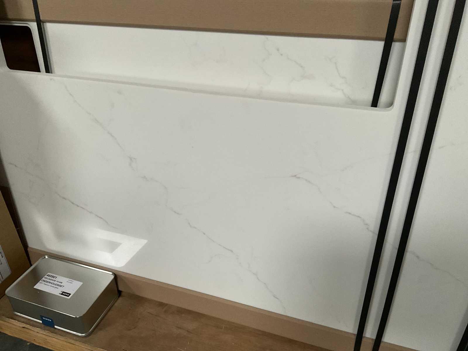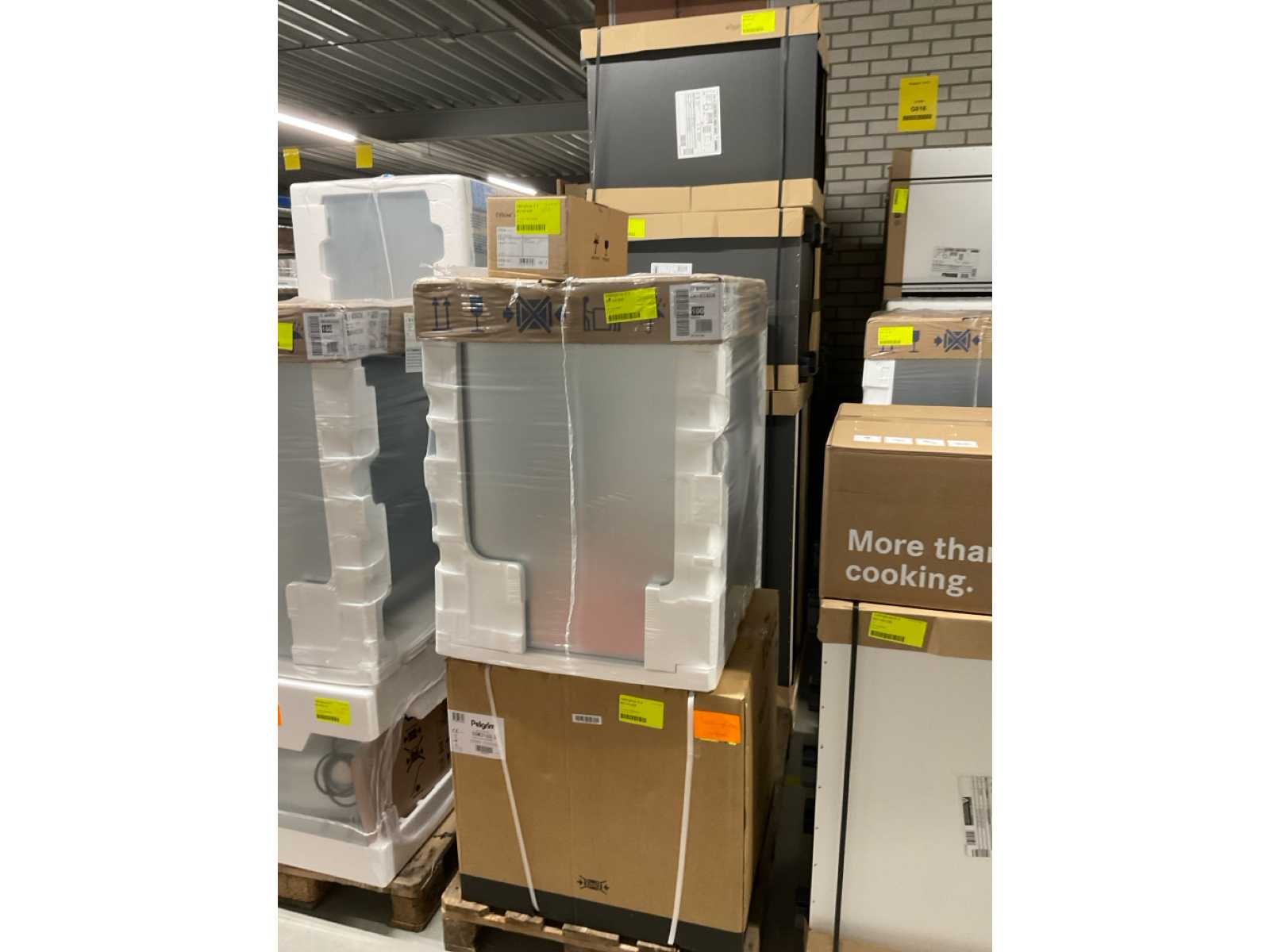 Indeling kookeiland: 2 ladenkasten waarvan 1 met binnenlade; barzitdeel; Indeling wandopstelling met spoeldeel; 2 onderkasten; 1 ladenkast met binnenlade en bestekinzet; 2 hoge kasten; wandplank met onzichtbare bevestiging afm. 125x25x6 cm; Apparatuur: Bora inbouw inductie kookplaat met kookveldafzuiging; type Puru; Pelgrim inbouw oven met magnetron; type COM316GLS; inhoud 72 liter; Bauknecht inbouwkoelkast; type KSI14VS2; cap. 241 liter; Evoline Backflip inbouw stopcontact met USB poort; Bosch inbouwvaatwasser; type SMV4ECX10E; 13 couverts; LET OP: keuken wordt geleverd in verpakking op 3 pallets; er staat geen showmodel opgesteld; zonder de transportwagen Nee Merk: Schüller Lengte: 432cm Kraan: Quooker 3-in-1 kokendwater kraan Flex met Combi+ 7 liter waterreservoir Gootsteen: Reginox New Jersey vlakinbouw Aanrechtblad: Kemie Just Luxury Stone Statuario Venato Glans Hoofdkleur: Onyxzwart mat