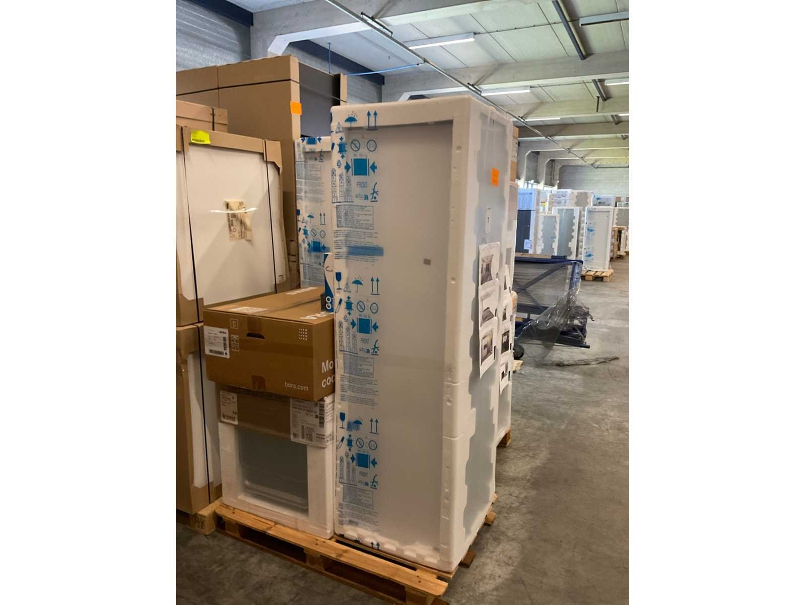 Indeling kook-spoeleiland: 4 onderkasten; w.o. ladenkast met besteklade; bardeel; Bora Pure 4-zone inductie kookplaat met kookveldafzuiging; recirculatie; Siemens inbouw vaatwasser; type SX63HX10TE; indeling wandopstelling: 2 hoge kasten; 1 onderkast met laden en 1 bovenkast; Indesit inbouwoven; type 3844 P IX; Whirlpool inbouw koelkast; type ARG184701; cap. 292/30 liter; Let op: keuken wordt geleverd in verpakking op 4 pallets; er staat geen showmodel opgesteld; zonder de transportwagen Nee Merk: Schuller Type keukenopstelling: eiland met wand Lengte: 213cm Kraan: eengreeps Gootsteen: vlakinbouw Aanrechtblad: Kemie natuursteen Nova black gepolijst Lengte kookeiland: 264cm Breedte kookeiland: 99cm Hoofdkleur: Wit Mat
