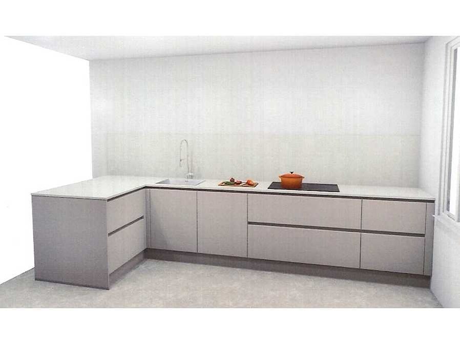 Indeling hoekopstelling met zitdeel: 2 onderkasten; 3 ladenkasten waarvan 1 met binnenlade; zitdeel; Bora inbouw inductiekookplaat met kookveldafzuiging; type Classic 2.0; Bosch inbouw koelvriescombinatie; type KBN96SDD0; 284/98 liter; Bosch vaatwasser type SMV6ZCX; indeling kastenwand: 4 hoge kasten; waarvan 1 met binnenlade; Bosch inbouwoven; type HBG934AB; inhoud 71 liter; Let op: keuken wordt geleverd in verpakking; er staat geen showmodel opgesteld. Nee Merk: Schüller Lengte: 402cm Breedte: 152cm Kraan: Lorreine Ribble Gootsteen: Onderbouw Aanrechtblad: Kemie Composiet kleur Blanco Nuvoloso glans Hoofdkleur: Zandgrijs