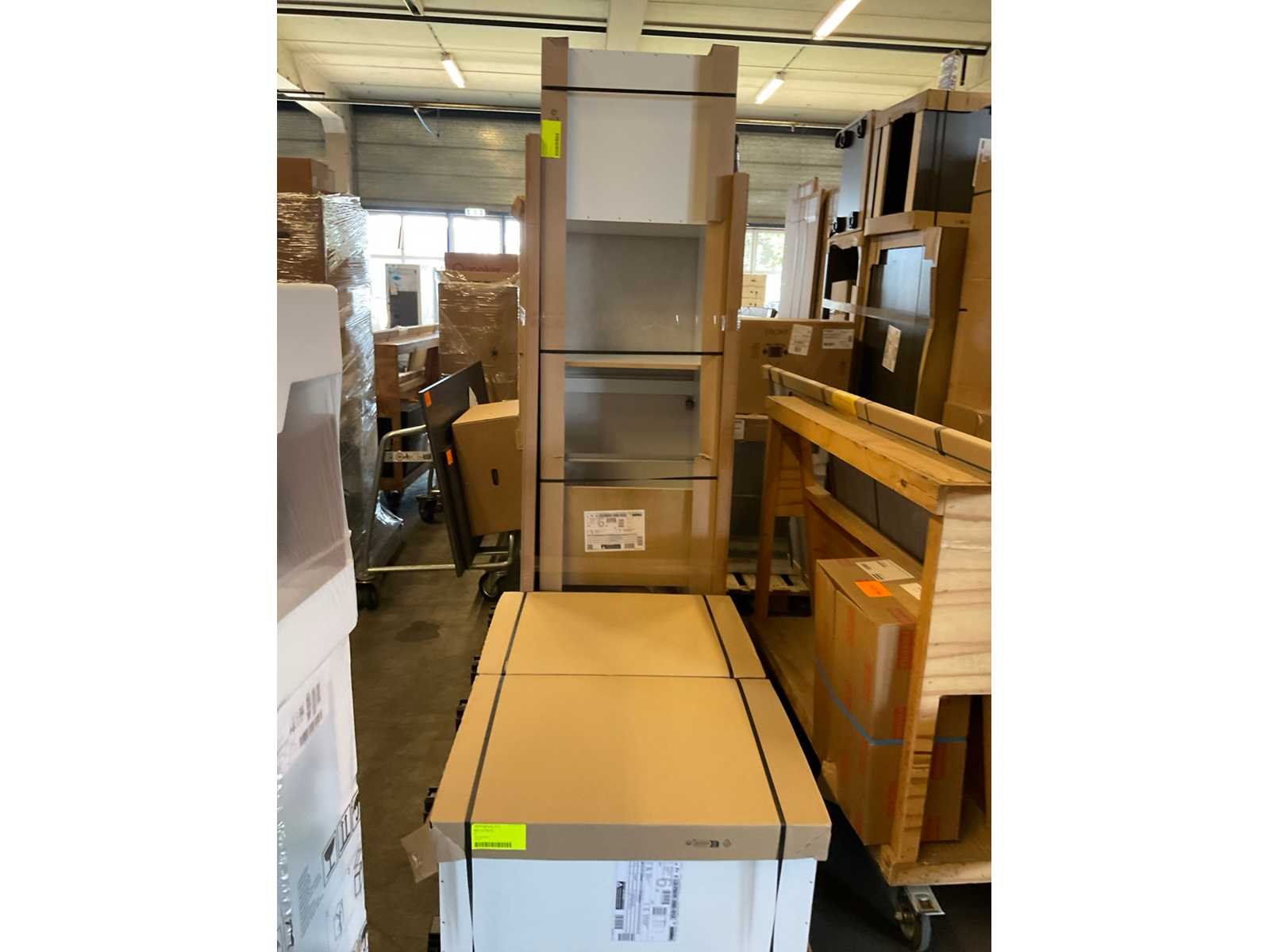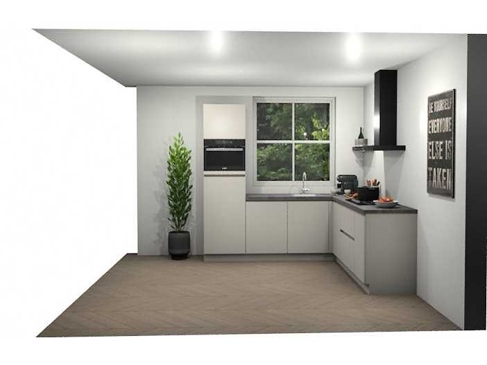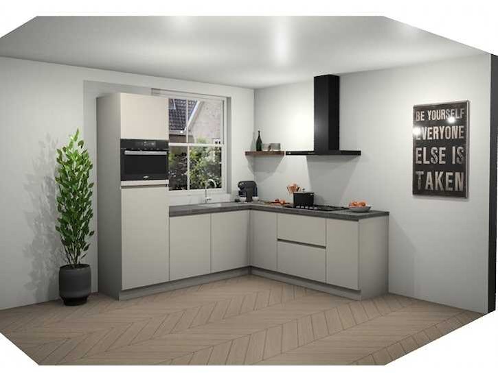 Indeling: 1 hoge kast; 4 onderkasten waarvan 1 ladenkast en 1 hoekkast; wandplank afm. 650x175x60 mm; inbouwapparatuur: Pelgrim 4-pits gaskookplaat; type GK4075Mat; Bauknecht wandschouw afzuigkap; type DBIBS93FLLK; WHirlpool inbouw combimagnetron; type AMW9605NB; inhoud 40 liter; Bauknecht inbouwkoelkast; type KSI9VS1; inhoud 131 liter; Whirlpool inbouwvaatwasser; type WIE2B19N; Let op: keuken wordt geleverd in verpakking; er staat geen showmodel opgesteld Nee Merk: Schüller Lengte: 245cm Breedte: 235cm Kraan: eengreeps Gootsteen: Reginox Colorado Aanrechtblad: met hard kunststof toplaag kleur Schelpenkalk grijsbruin Hoofdkleur: Schelpenwit Mat