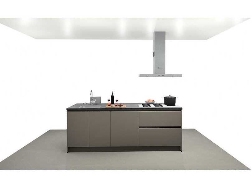 Indeling kook-spoeleiland: 3 onderkasten; w.o. ladenkast; bardeel; Quooker 3-in-1 kokendwater kraan; type Flex met 3 liter waterreservoir; Pelgrim inbouw gaskookplaat; type GK875RVS; Bosch inbouw vaatwasser; type SMV4ECX10E; indeling wandopstelling: 3 hoge kasten; Indesit inbouwoven; type IFW4841 JH BL; Whirlpool inbouw koelkast met vriesvak; type ARG 184701; cap. 292/30 liter; Let op: keuken wordt geleverd in verpakking op 4 pallets; er staat geen showmodel opgesteld; zonder de transportwagen Nee Merk: Schuller Type keukenopstelling: eiland met wand Lengte: 189cm Kraan: Quooker Flex rvs Pro 3 Gootsteen: opbouw Aanrechtblad: met hardkunststof toplaag kleur schelpenkalk grafiet imitatie Lengte kookeiland: 244cm Breedte kookeiland: 100cm Hoofdkleur: Kiezelgrijs mat