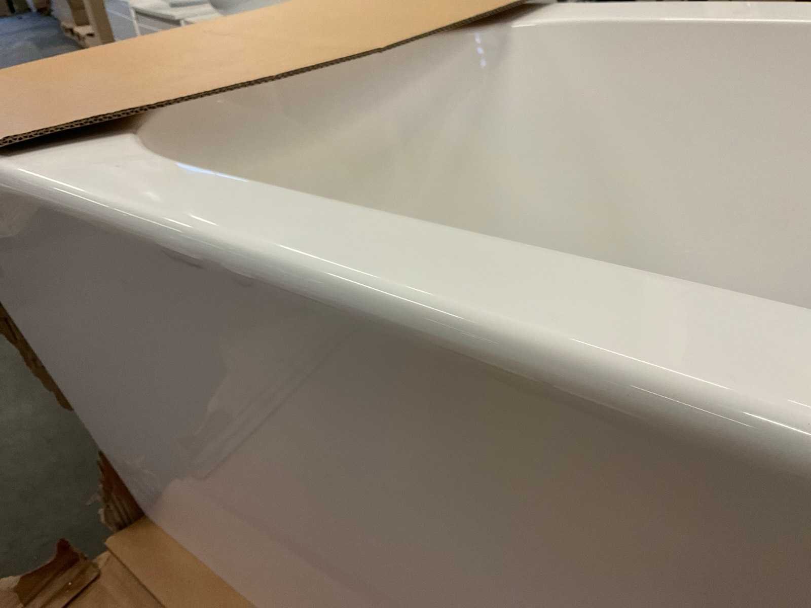 Ongebruikt; productiefout in randafwerking Nee Merk: Xenz Model: Charley Links Lengte: 180cm Breedte: 80cm Hoogte: 60cm Materiaal: Acryl