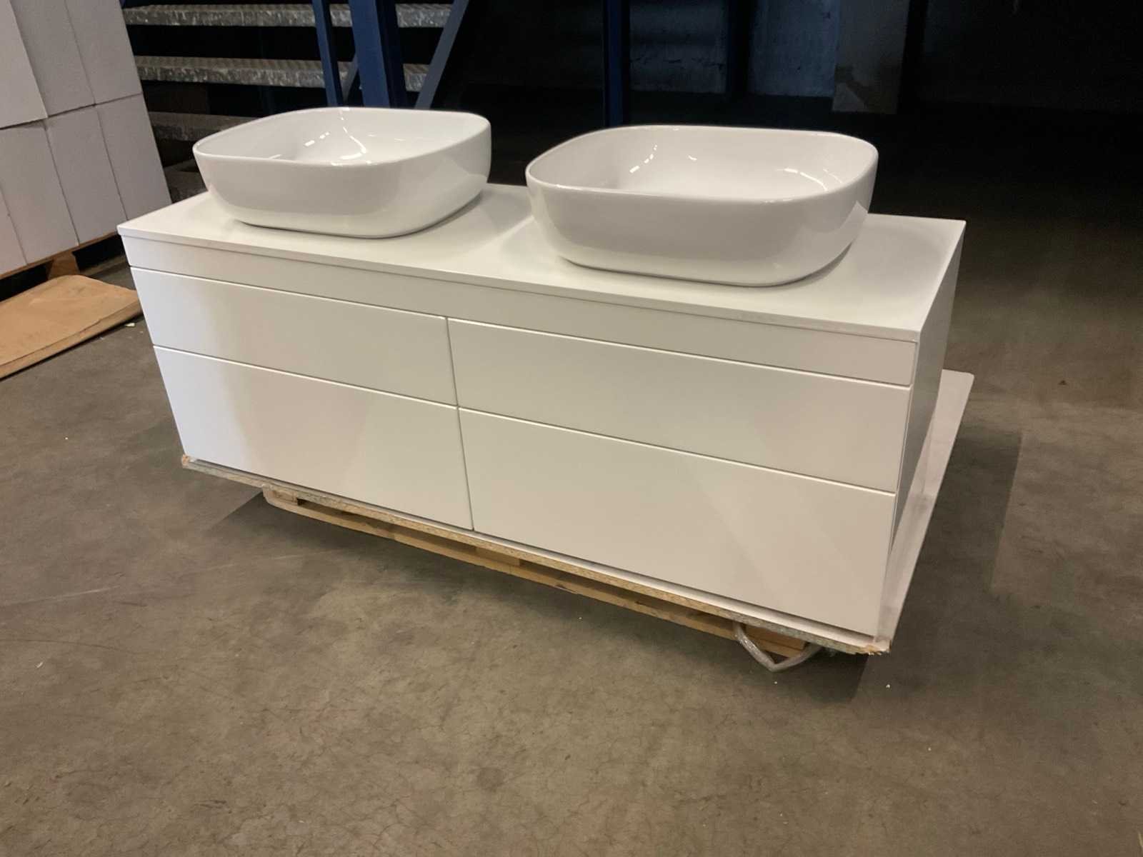 Lades push-to-open; greeploos; 2 waskommen afm. 50x40 cm; showmodel Nee Merk: Best Design Model: Beauty Lengte: 140cm Breedte: 45cm Kleur: hoogglans wit Waskom: 2 Lades: 4 Softclose: true