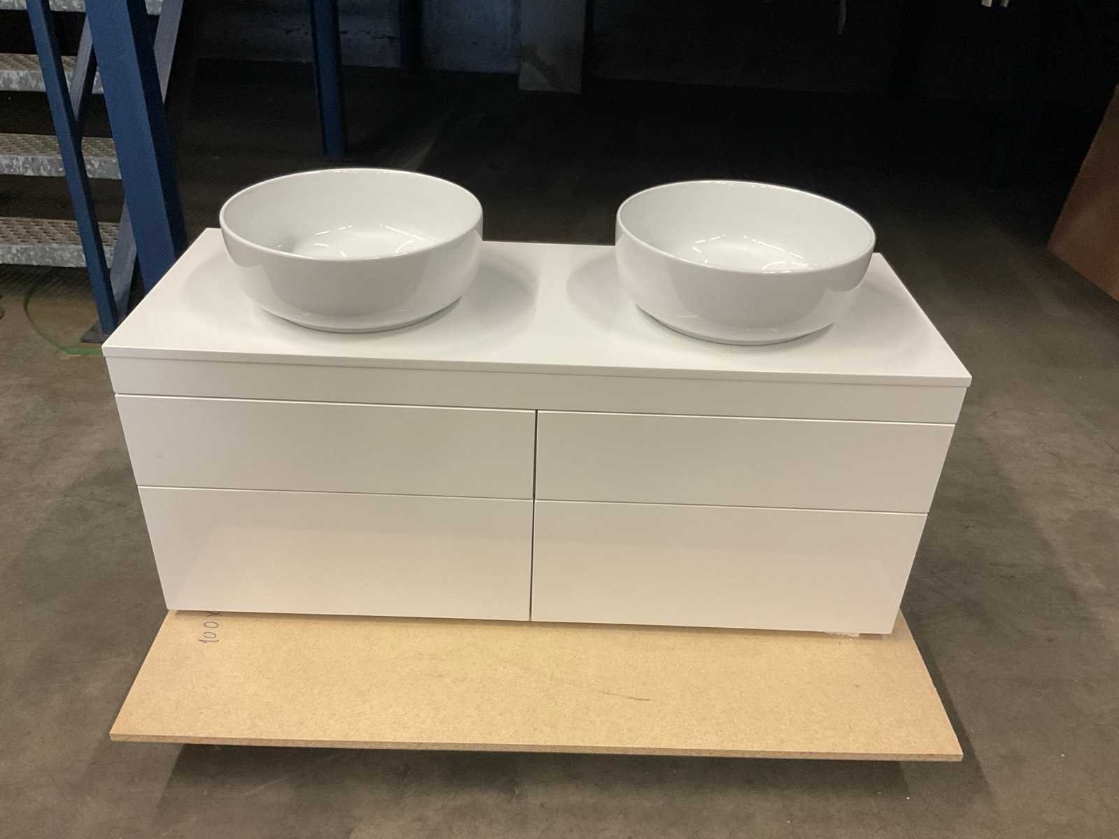 Lades push-to-open; greeploos; 2 waskommen diameter 38 cm Nee Merk: Best Design Model: Beauty Lengte: 120cm Breedte: 45cm Kleur: hoogglans wit Waskom: 2 Lades: 4