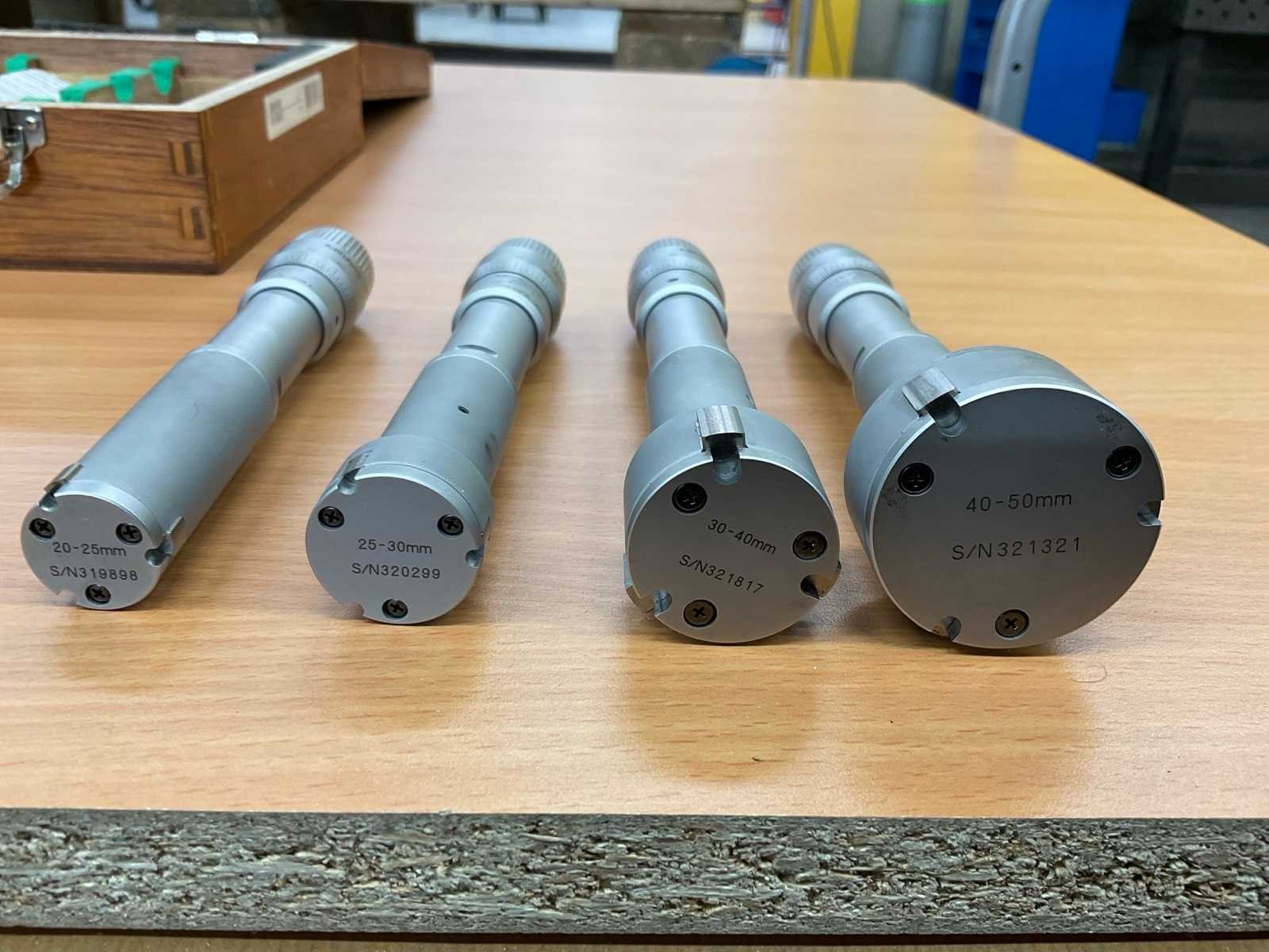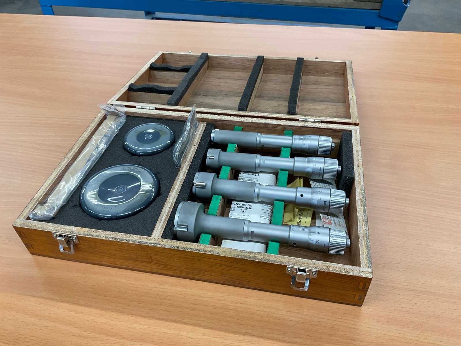 Mitutoyo 368-992 driepunts binnenmicrometer set (4x) nieuw in houten kist.