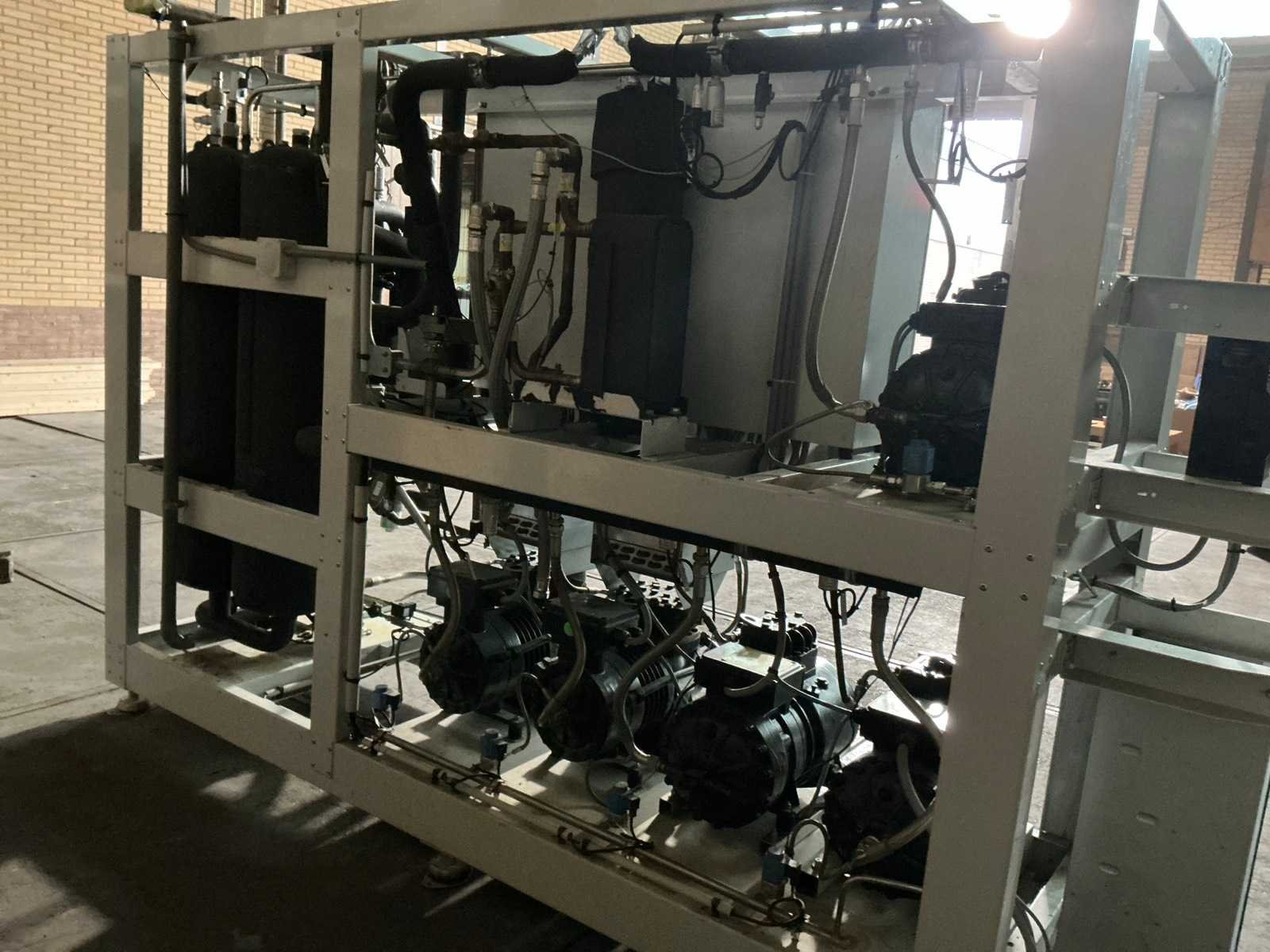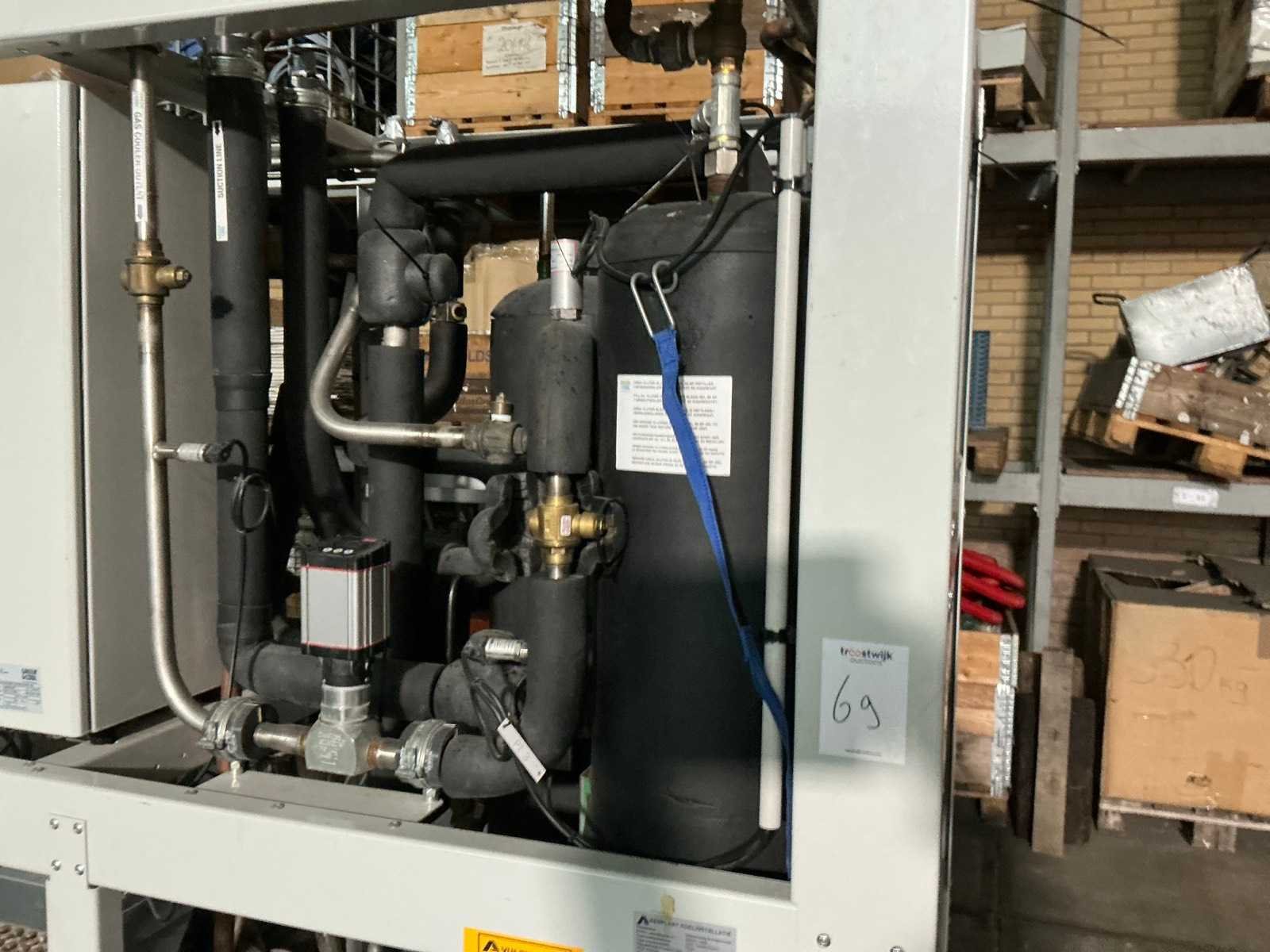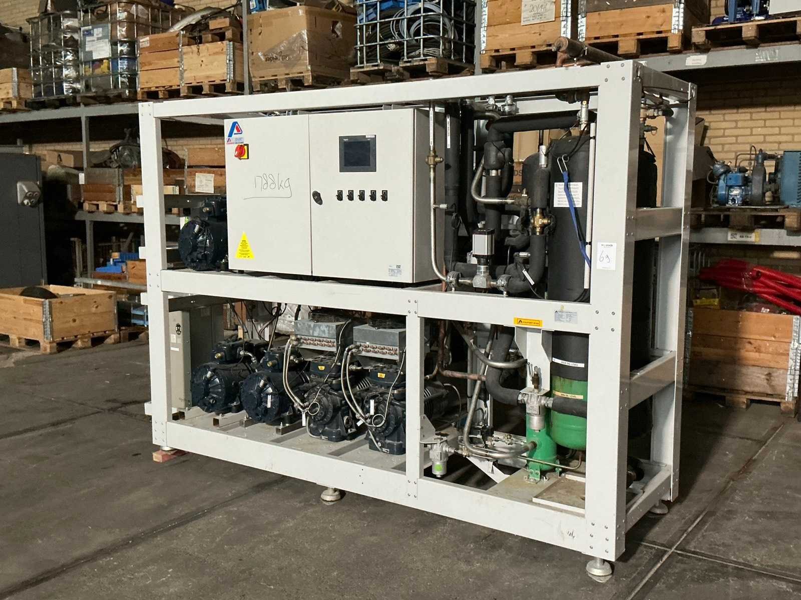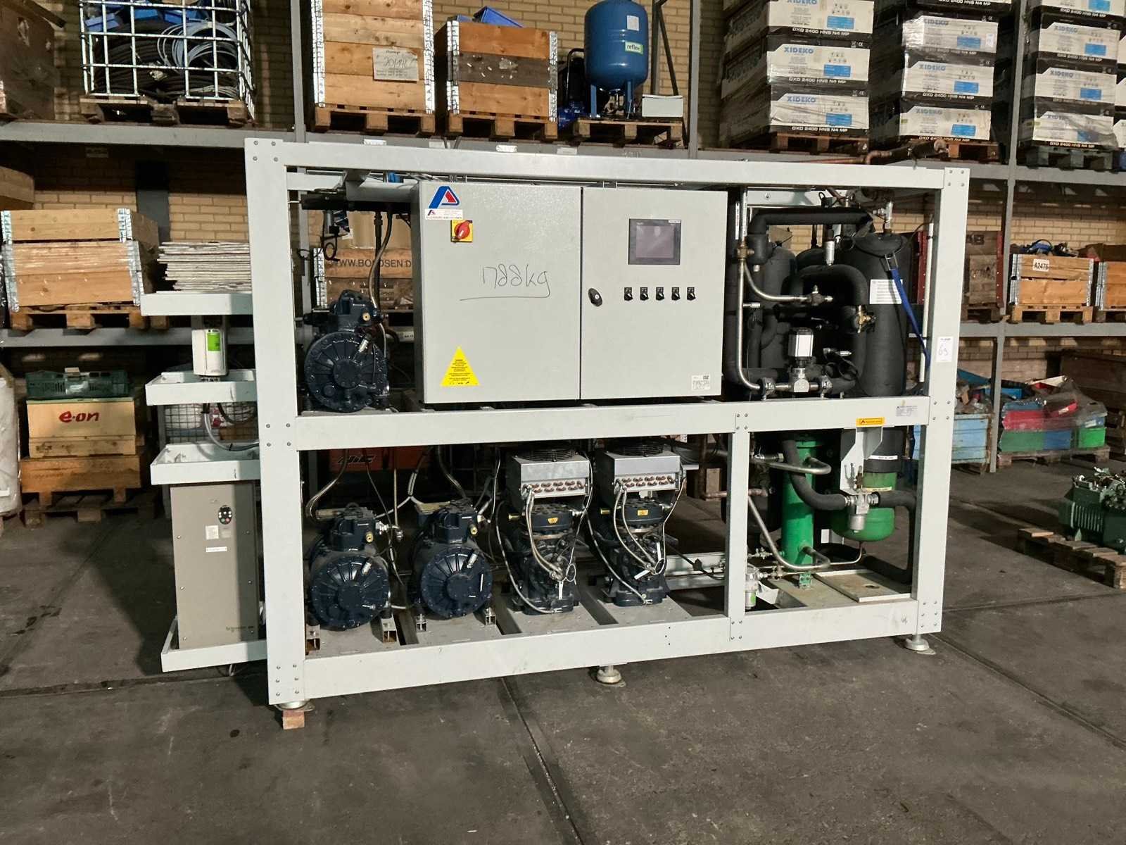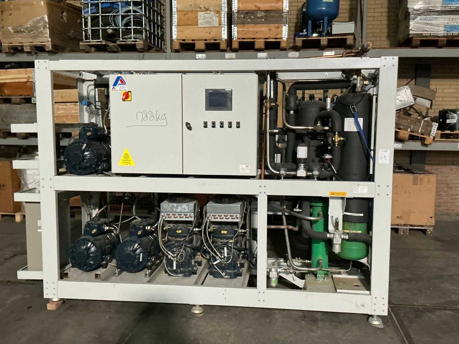 Voorzien van 5x koelcompressor, diverse Schneider besturingscomponenten Nee Merk: Green&Cool Aansluiting: 400V Totale afmeting Hoogte: 2100mm Totale afmeting Breedte: 1000mm Eigen gewicht: 1788kg Totale afmeting L: 3200mm Vermogen: 82kW Type: CRYS DX0 Bouwjaar: 2010