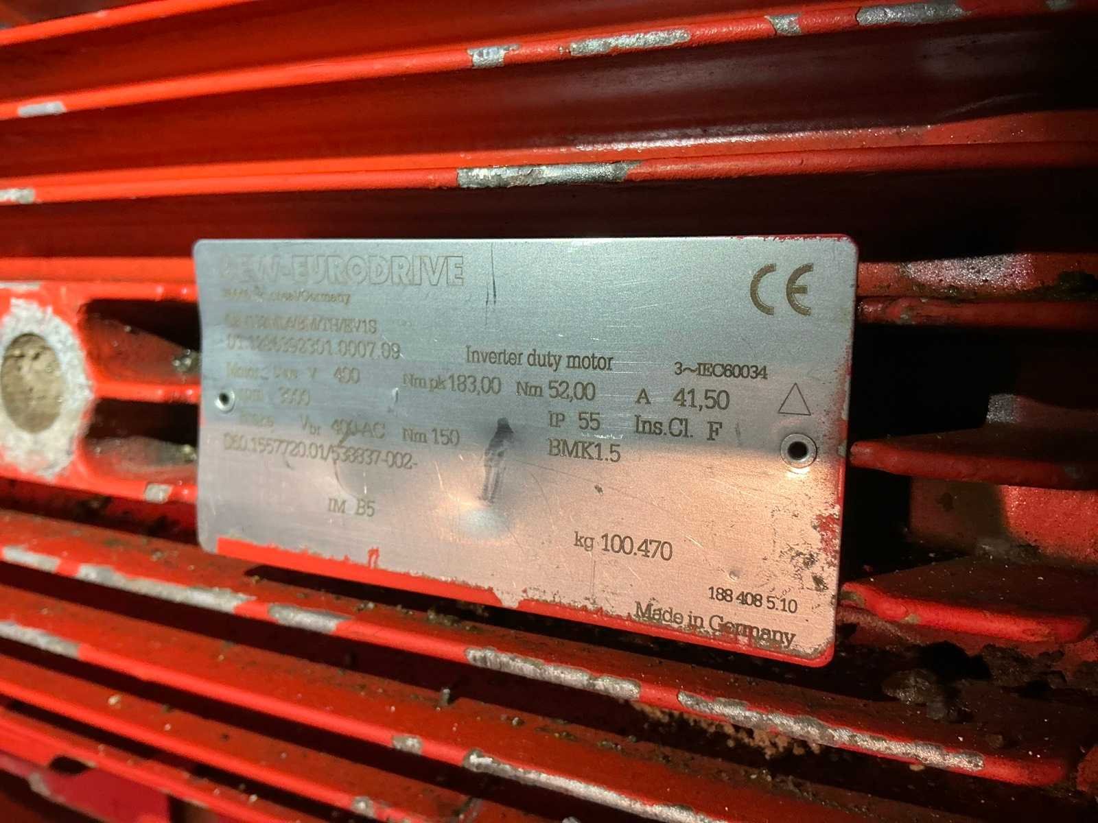 Geremd, 265kg. Beschadigde behuizing Nee Merk: SEW Eurodrive Product type: KA97….. Aansluiting: 400V Lengte: 1100cm Breedte: 33cm Hoogte: 44cm