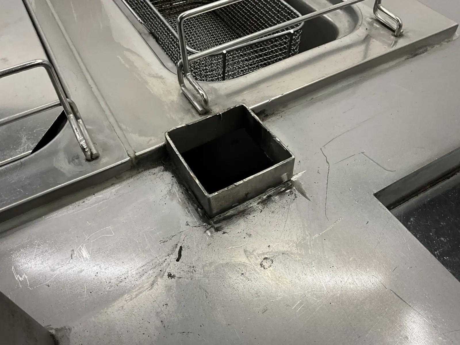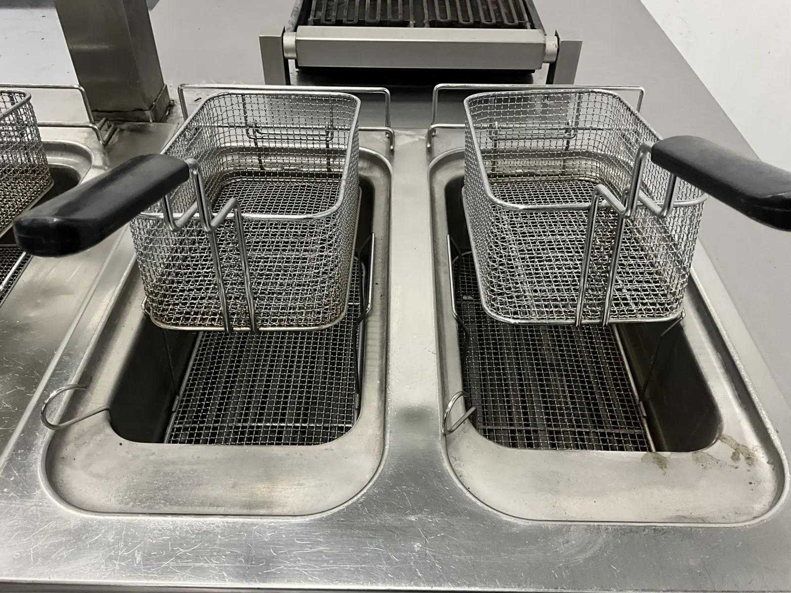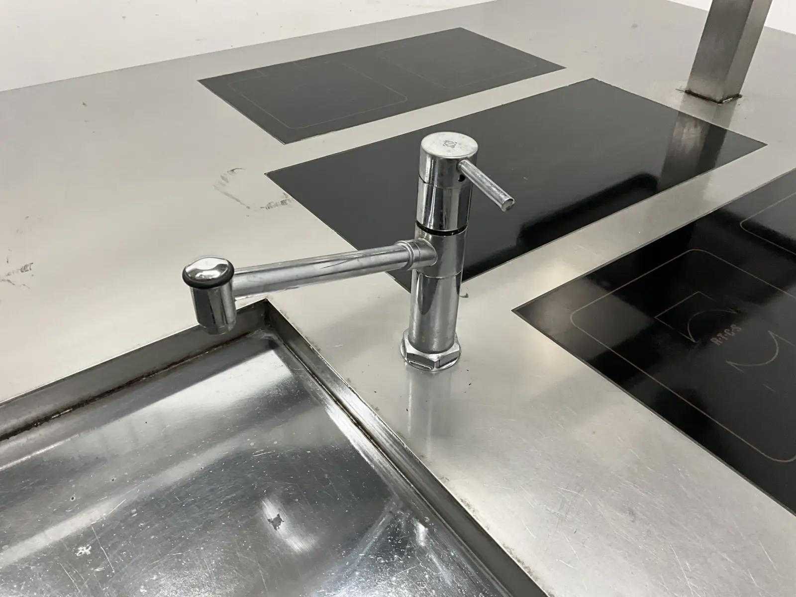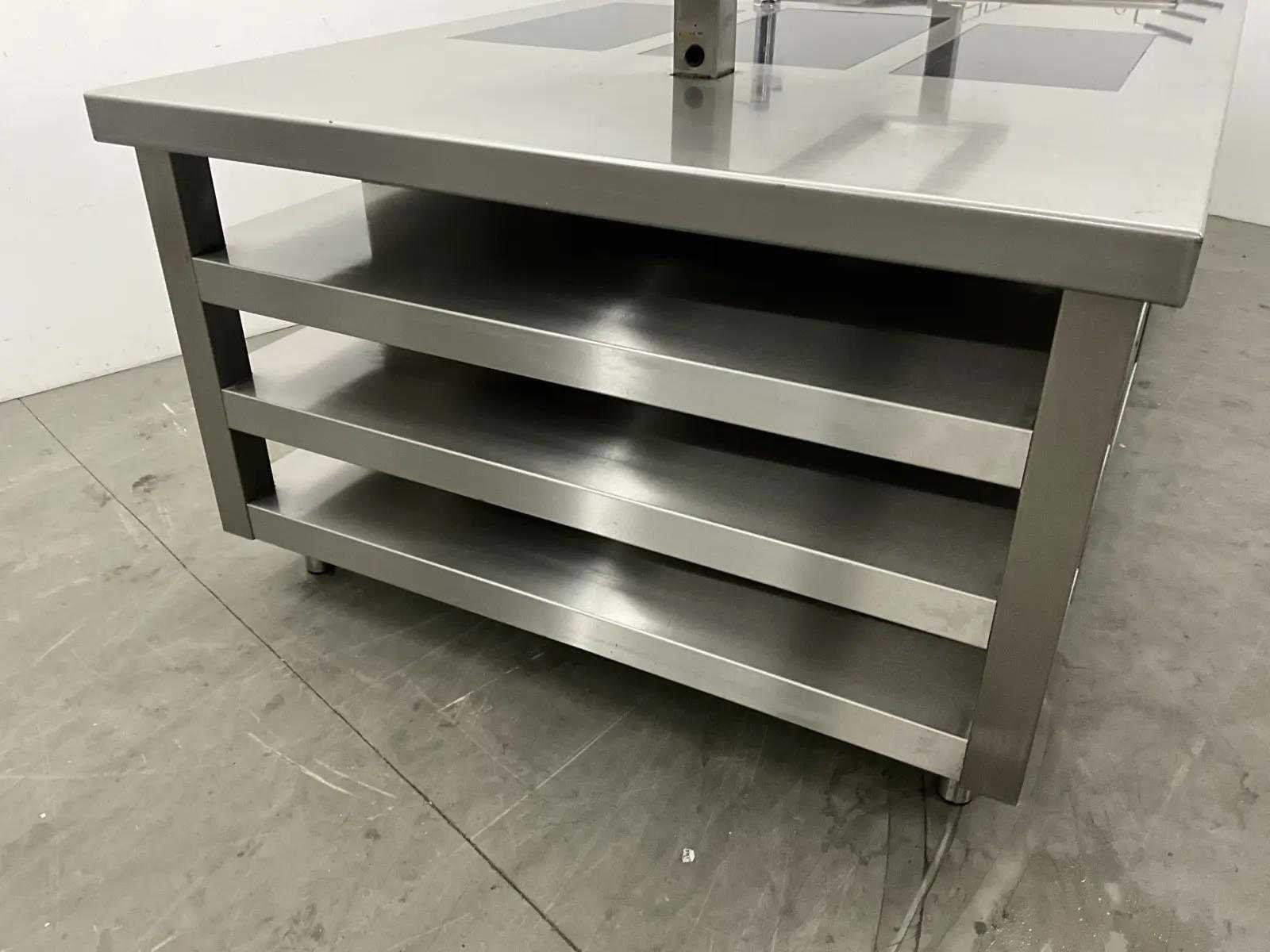 V.v. inductiefornuis, 3 elektrische friteuses, een waterbadgrill, en verchroomde bakplaat. Nee Lengte: 3200cm Breedte: 160cm Hoogte: 190cm Totale afmeting Breedte: 1600mm Totale afmeting L: 32000mm Totale afmeting Hoogte: 1900mm