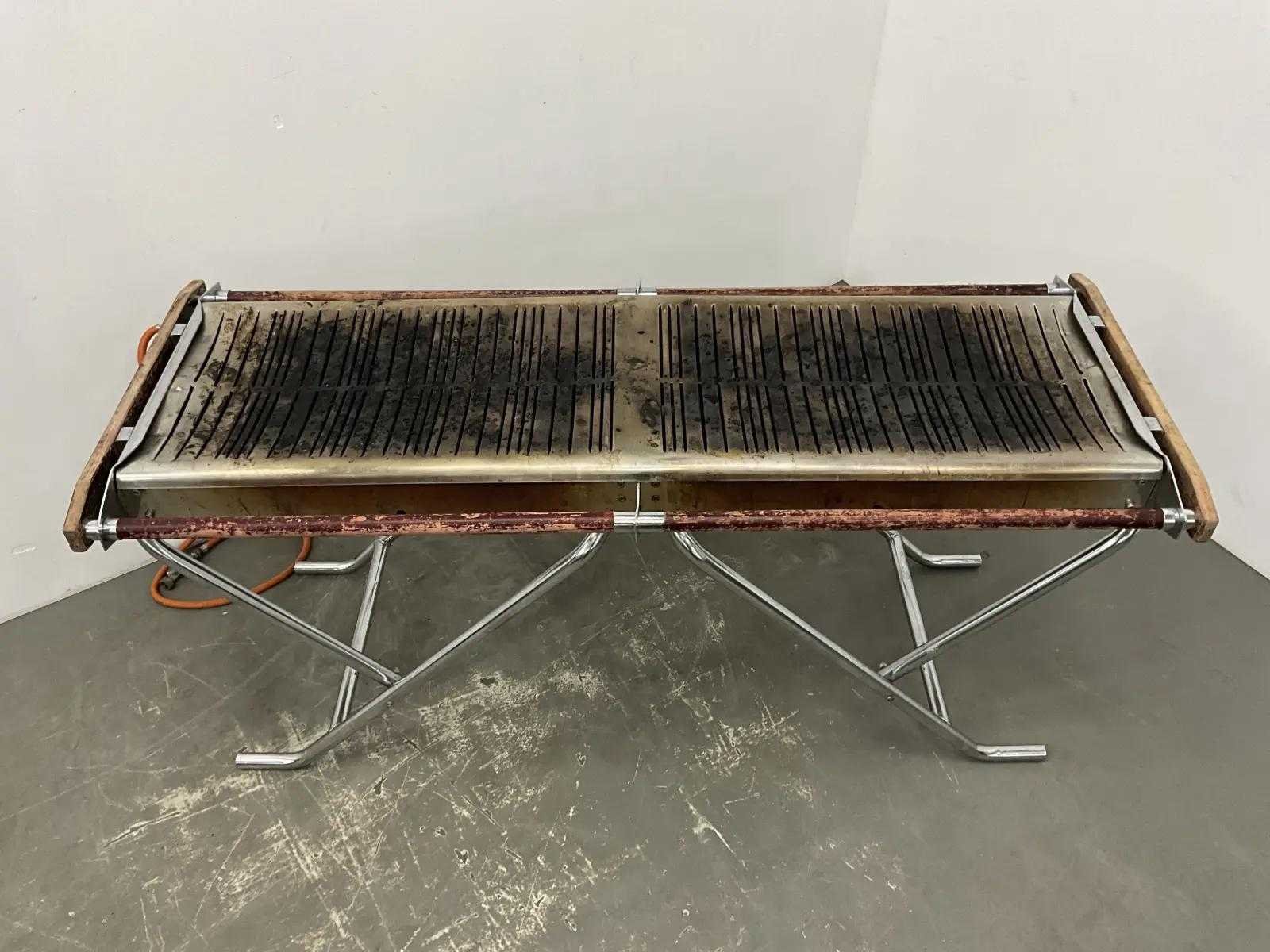 Let op! Object is onderdeel van een grotere partij identieke producten in vrijwel dezelfde staat afkomstig van dezelfde locatie. De foto’s zijn van slechts van een (deel) product(en) uit de partij. Het daadwerkelijke object kan afwijken van de gefotografeerde stukken. Wij adviseren u om gebruik te maken van de kijkdag om de status en het uiterlijk van het object zelf te controleren en te beoordelen. Nee Merk: Cinders Barbecues Model: Classic TG 160 Lengte: 172cm Breedte: 66cm Hoogte: 80cm