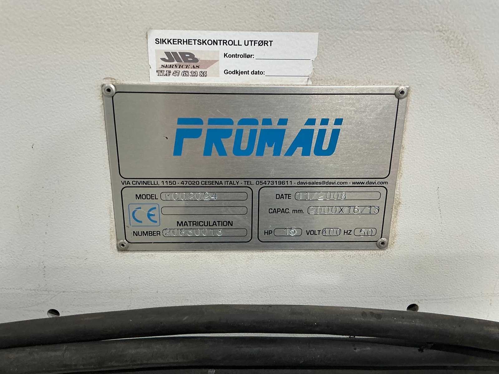Nee Merk: DAVI Type: MCO 2024 Bouwjaar: 2008 Serienummer: 20830013 Capaciteit lengte: 2000mm Max. plaatdikte: 16mm Aantal rollen: 3 Motorvermogen (kW): 11kW Machinegewicht: 7000kg Afmeting l: 4500mm Afmeting b: 1700mm Afmeting h: 1200mm GS Code: 84.622.900