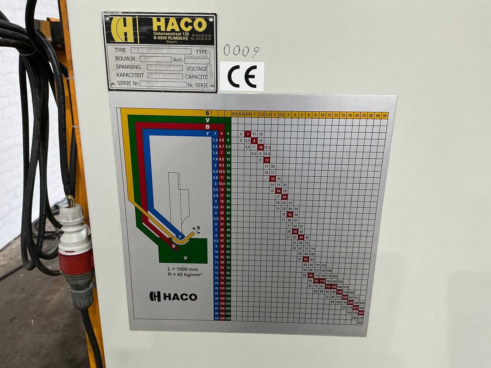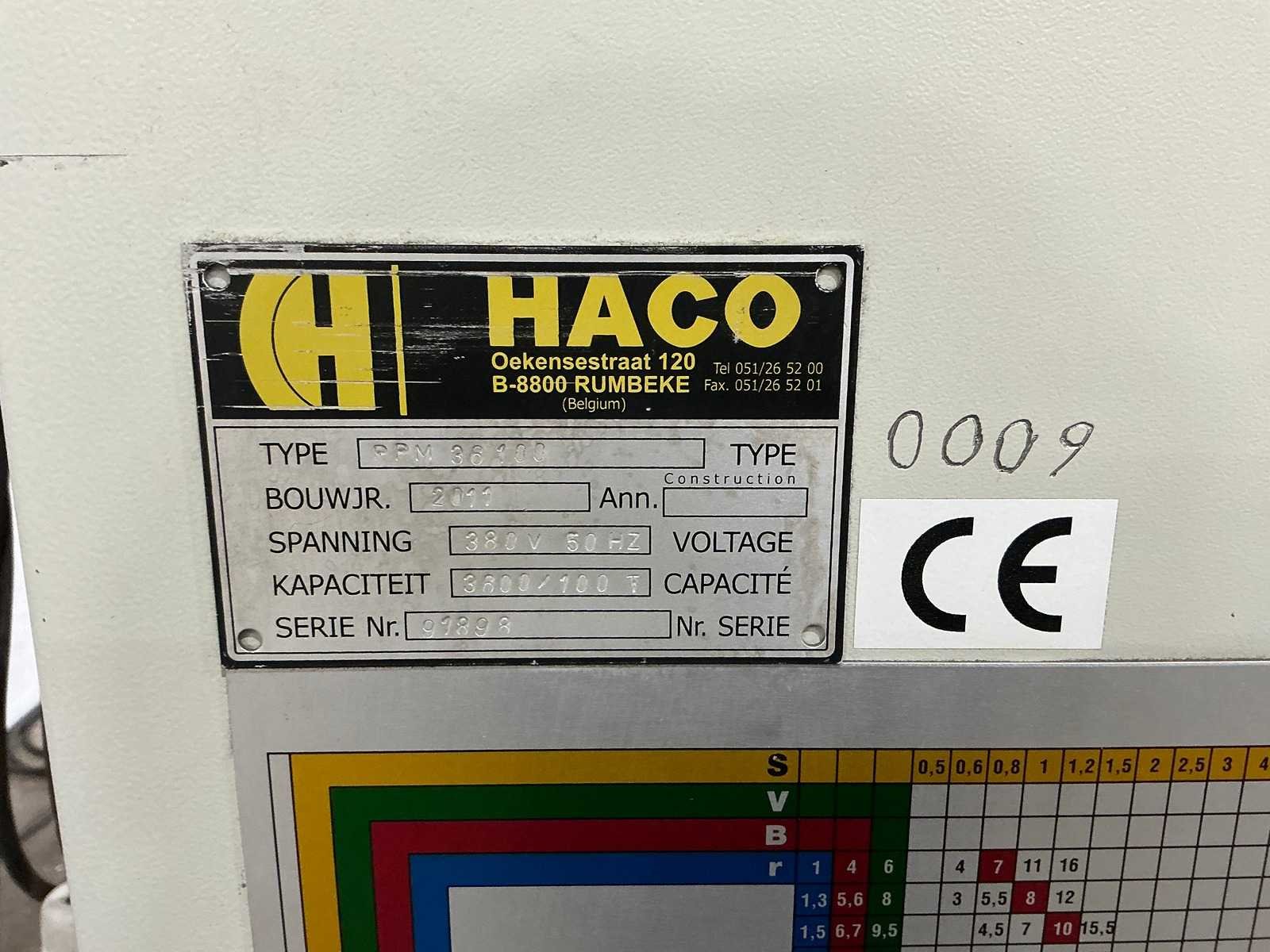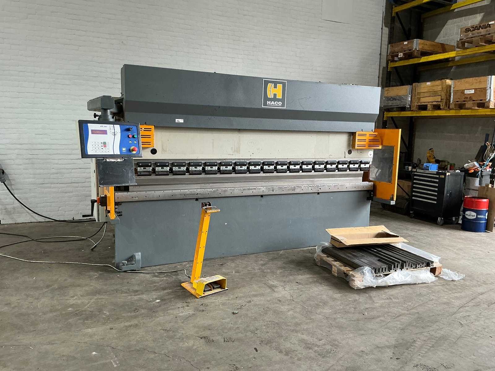 Press force [ton] 100 Max. working width [mm] 3600 Column gap [mm] 3300 Throat depth [mm] 250 Backgauge depth [mm] 600 Max. stroke [mm] 120 Nee Merk: Haco Type: PPM 36100, 3600mm x 100t Bouwjaar: 2011 Serienummer: 91898 Capaciteit.: 100t Werklengte: 3600mm Voetbediening: true Achteraanslag elektrisch: true Achteraanslag bereik: 600mm Machinegewicht: 8200kg Afmeting l: 4800mm Afmeting b: 1800mm Afmeting h: 2250mm