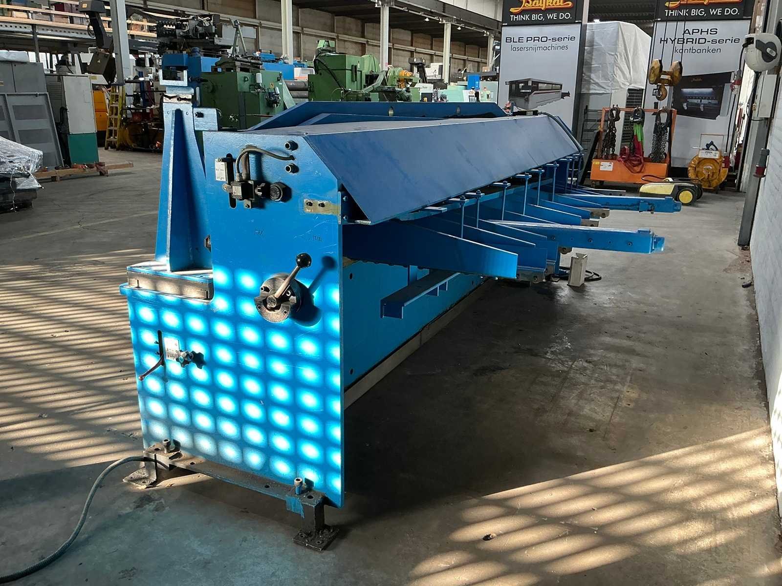 Nee Merk: LVD Type: MV 3100x3.5mm Bouwjaar: 1974 Serienummer: 4500 Snijlengte: 3100mm Max. plaatdikte: 4mm Achteraanslag bereik: 1300mm Machinegewicht: 4000kg Afmeting l: 4000mm Afmeting b: 2000mm Afmeting h: 1600mm