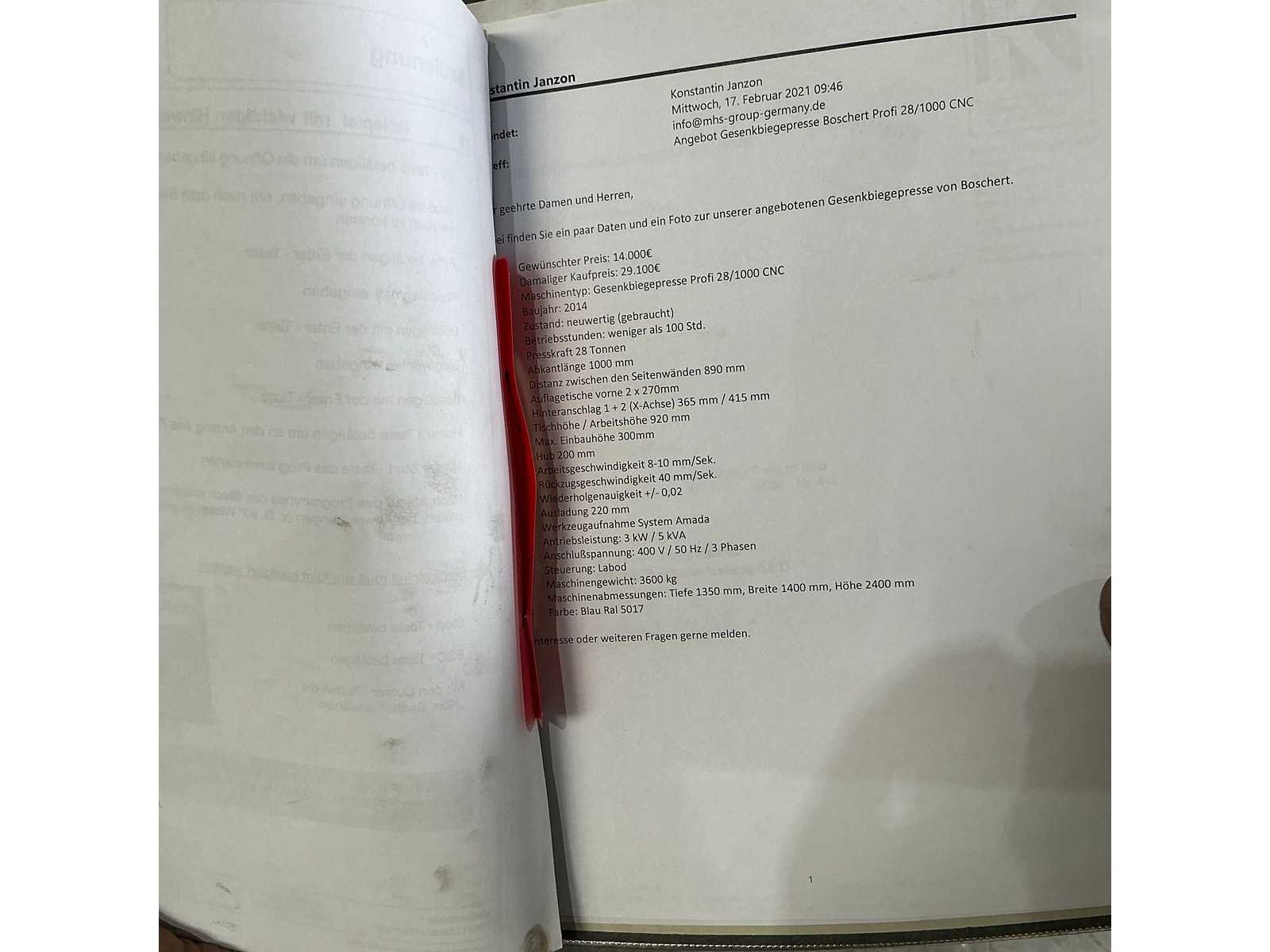 Boschert - profi 28 / 1000 cnc - cnc bending machine - 2014
