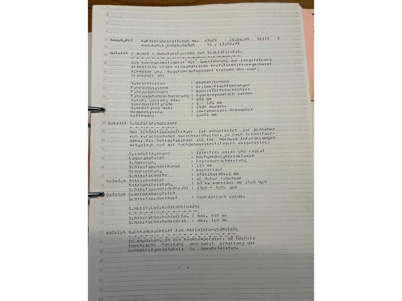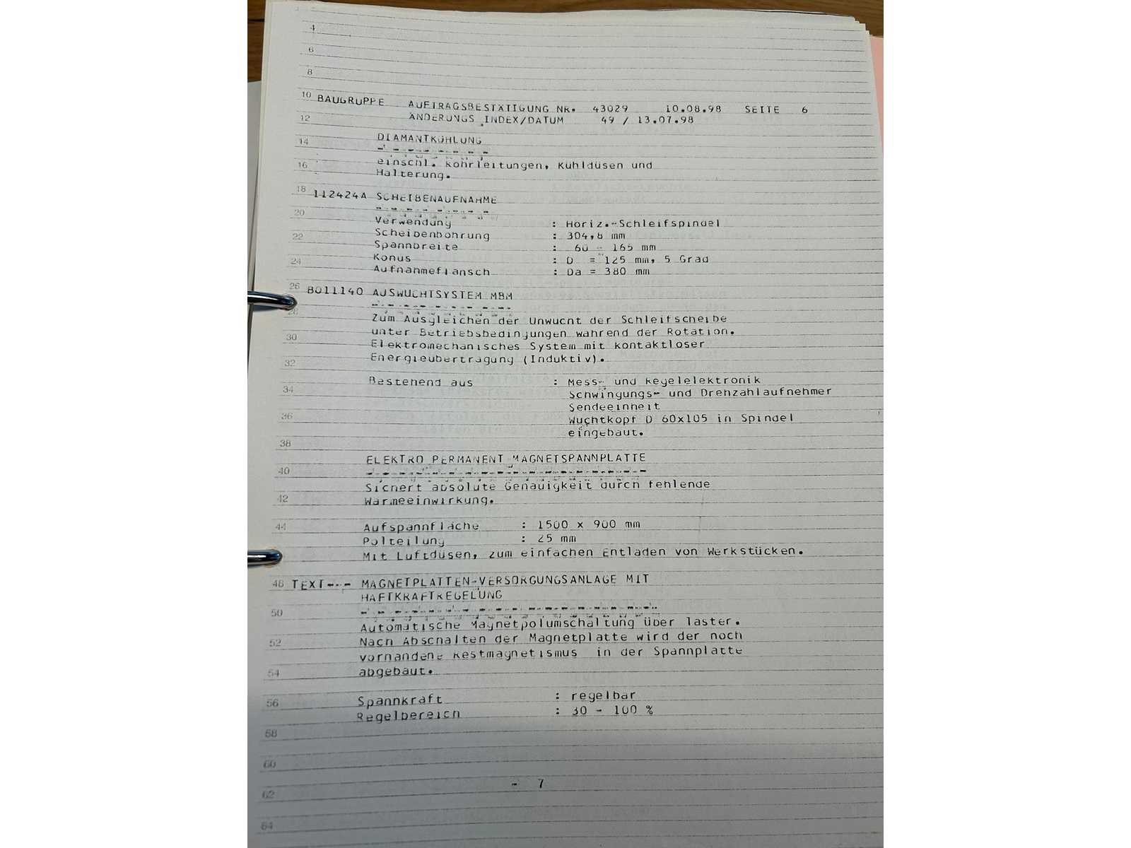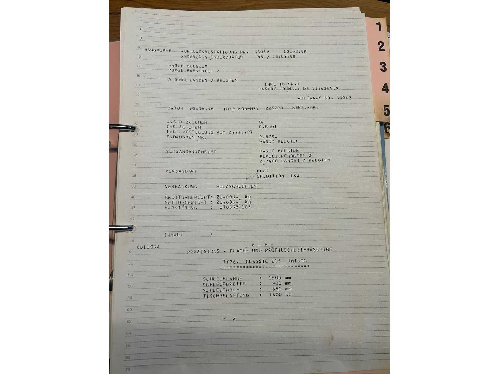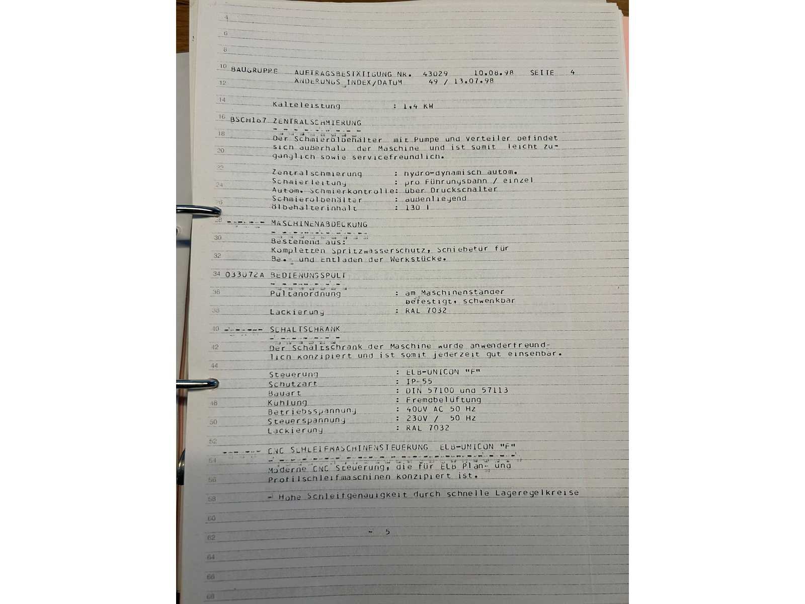 Nee Merk: ELB Type: CLASSIC B15 UNC.F Bouwjaar: 1998 Serienummer: 430290898 CNC: true Slijpbereik: 1500mm Tafel afmeting l: 2000mm Tafel afmeting b: 900mm Snelheid tot n =: 3000rpm Magnetische opspantafel afm.: 1500-800mm Besturing, merk, type: Unicon Motorvermogen (kW): 60kW Machinegewicht: 21000kg