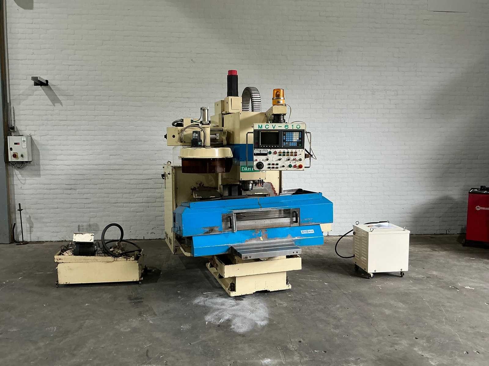 No Merk: Dah Lih Type: DL-MCV 610 Bouwjaar: 1992 Serienummer: 610555 Verplaatsing x-as: 610mm Verplaatsing y-as: 460mm Verplaatsing z-as: 510mm Opname: BT40 Snelheid van n =: 60rpm Snelheid tot n =: 6000rpm Tafel afmeting l: 950mm Tafel afmeting b: 560mm CNC-besturing, merk, type: Fanuc Motorvermogen (kW): 7.5kW Machinegewicht: 3800kg Afmeting l: 2100mm Afmeting b: 2600mm Afmeting h: 2600mm GS Code: 84.593.900
