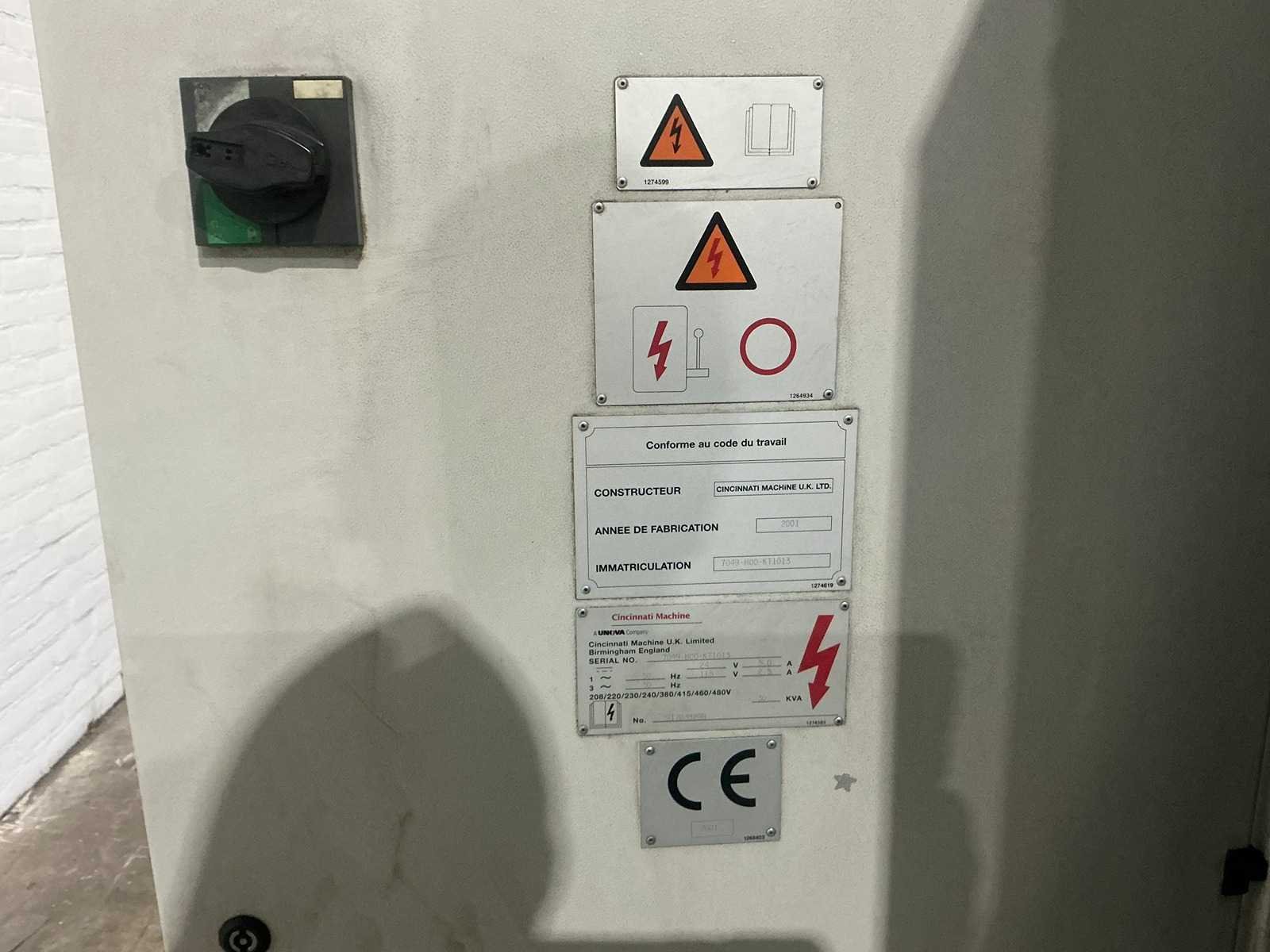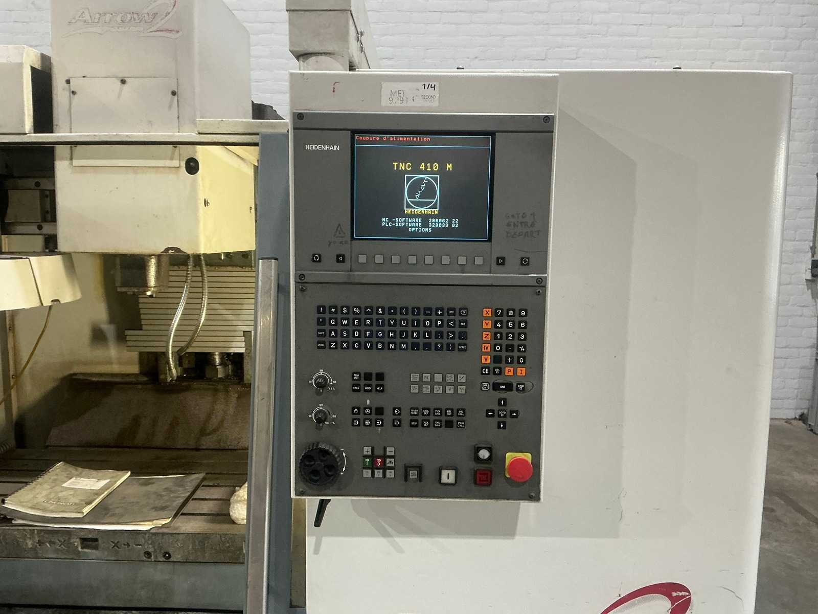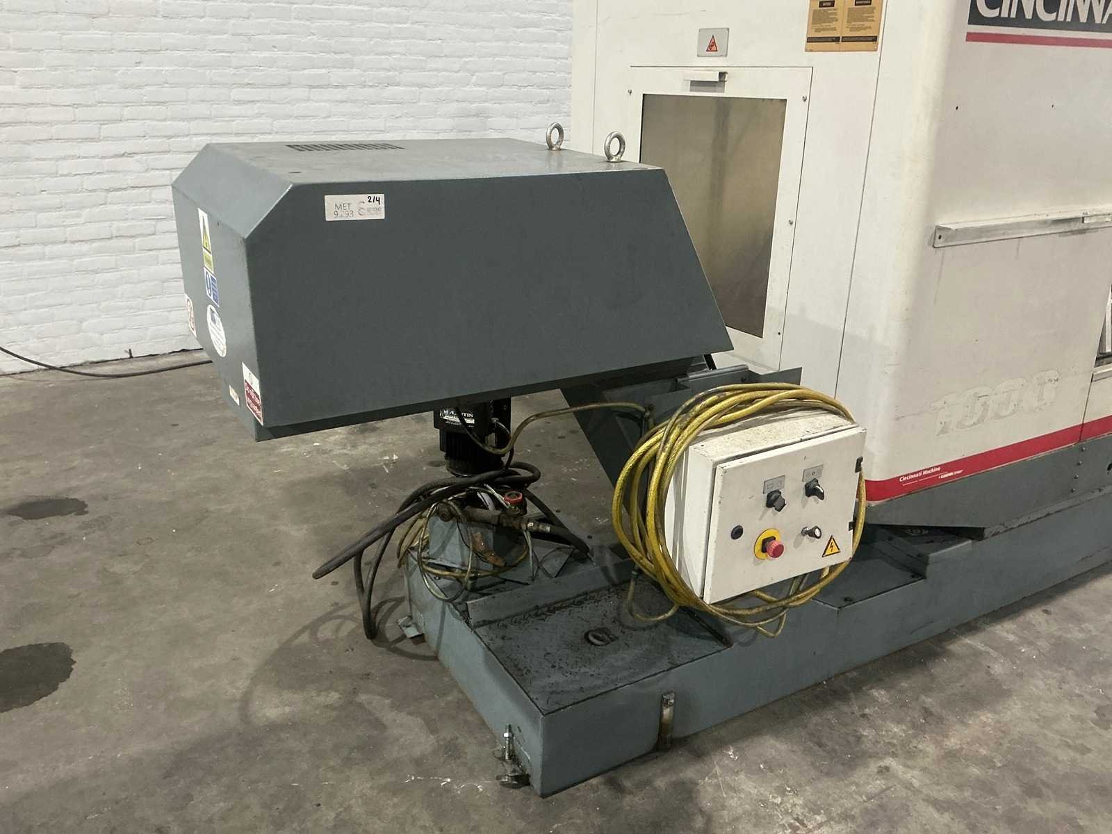 Losse 4de as. No Merk: Cincinnati Type: ARROW2-1000 Bouwjaar: 2001 Serienummer: 7049-H00-KT1013 Opname iso: 40 Verplaatsing x-as: 1020mm Verplaatsing y-as: 510mm Verplaatsing z-as: 560mm CNC-besturing, merk, type: Heidenhain Spanentransporteur: true Koelmiddelpomp: true Werkstuk gewicht max.: 1000kg T-gleuf opspantafelafmeting B: 1120mm T-gleuf opspantafelafmeting L: 600mm -assig: 4 Aansluiting: 4000V Machinegewicht: 5500kg Afmeting l: 4300mm Afmeting b: 2350mm Afmeting h: 2600mm
