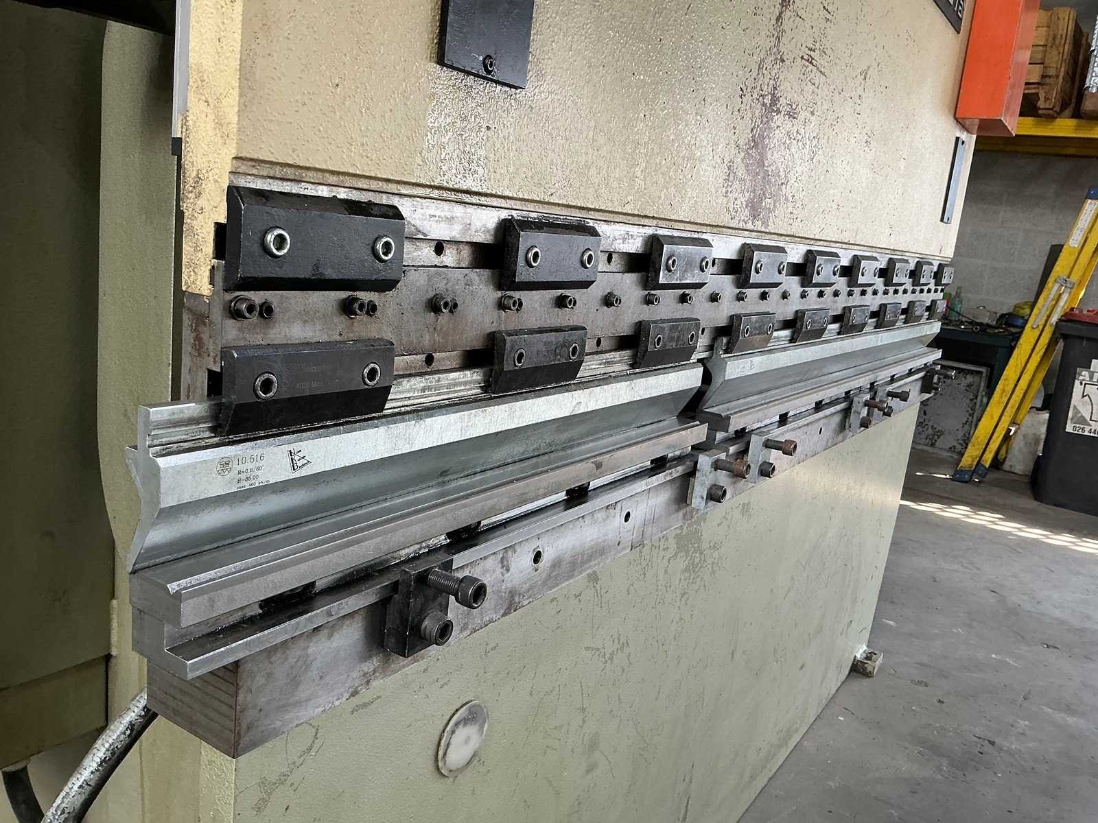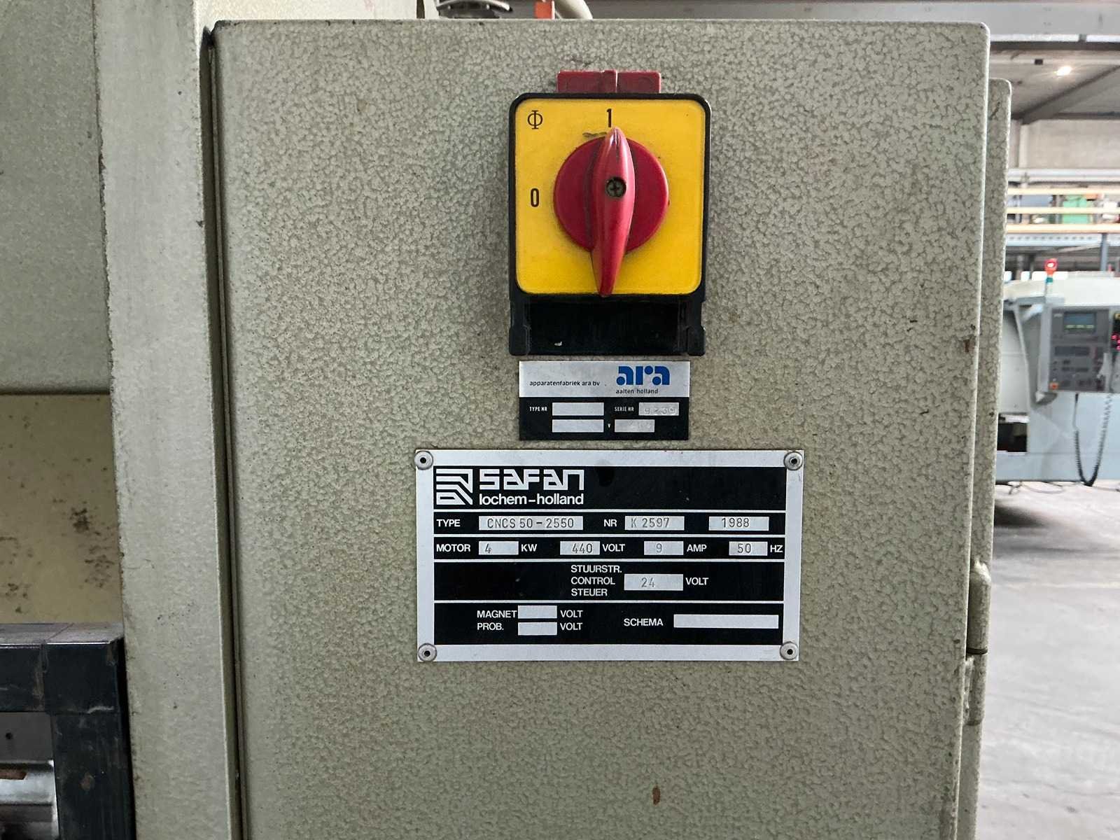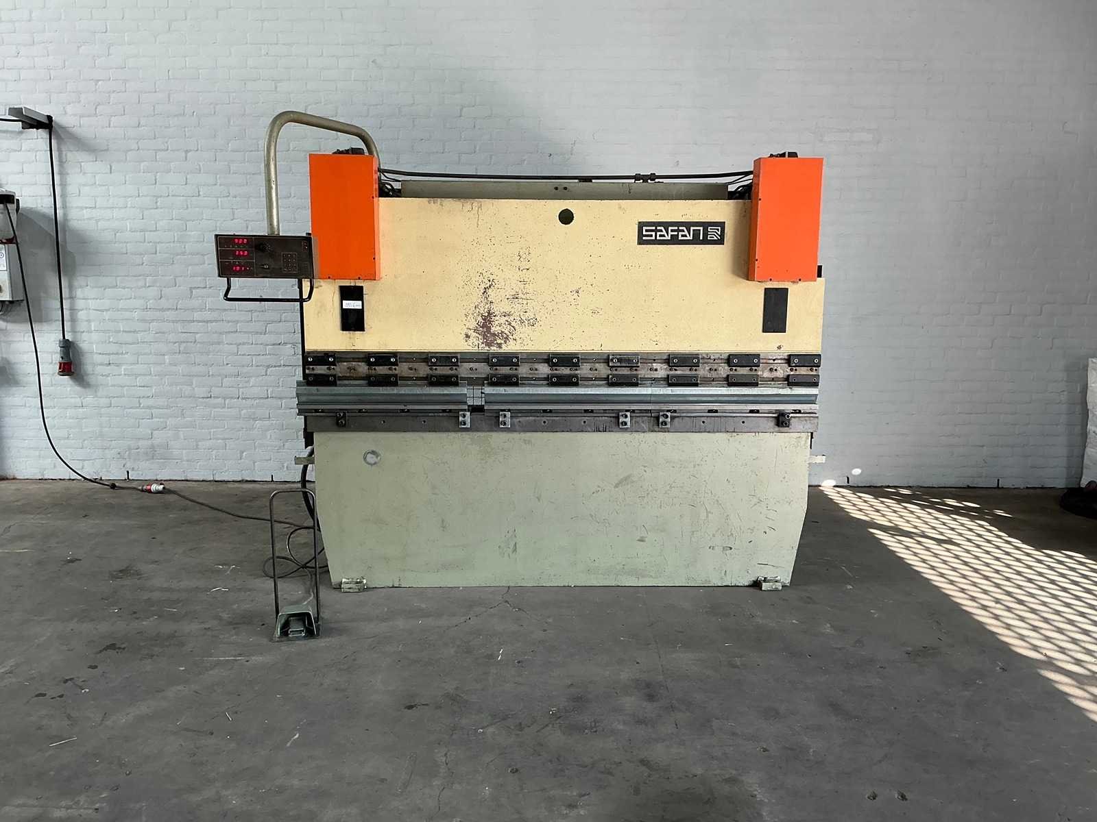 Machine inclusief tooling. Met CNCS, NC besturing voor positionering diepte en afstand. Deze moet aangepast worden aangezien vingerbeveiliging is weggehaald Nee Merk: Safan Type: CNCS 50-2550 Bouwjaar: 1988 Capaciteit.: 50t Werklengte: 2550mm Voetbediening: true CNC-besturing, merk, type: CNCS, ARA Aansluiting: 400V Machinegewicht: 3500kg Afmeting l: 2800mm Afmeting b: 1300mm Afmeting h: 2300mm