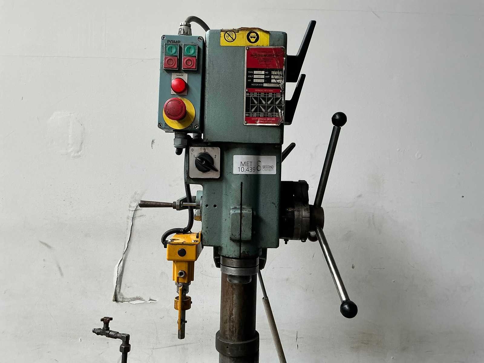 Nee Merk: Strands Type: S68 Serienummer: 88429 Spindelsnelheid van n =: 100rpm Spindelsnelheid tot n =: 2900rpm Tafel afmeting l: 420mm Tafel afmeting b: 270mm Koelmiddelpomp: true Motorvermogen (kW): 0,9kW Aansluiting: 380V Machinegewicht: 500kg Afmeting l: 900mm Afmeting b: 700mm Afmeting h: 2000mm