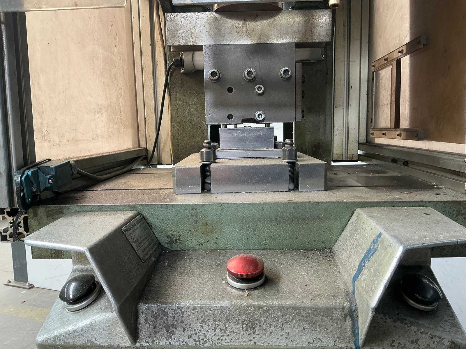 No Merk: Pressomatic Type: PC 15.2 Bouwjaar: 1973 Serienummer: 126-1 Capaciteit.: 8t Tafel afmeting l: 500mm Tafel afmeting b: 400mm Machinegewicht: 500kg Afmeting l: 900mm Afmeting b: 700mm Afmeting h: 1900mm