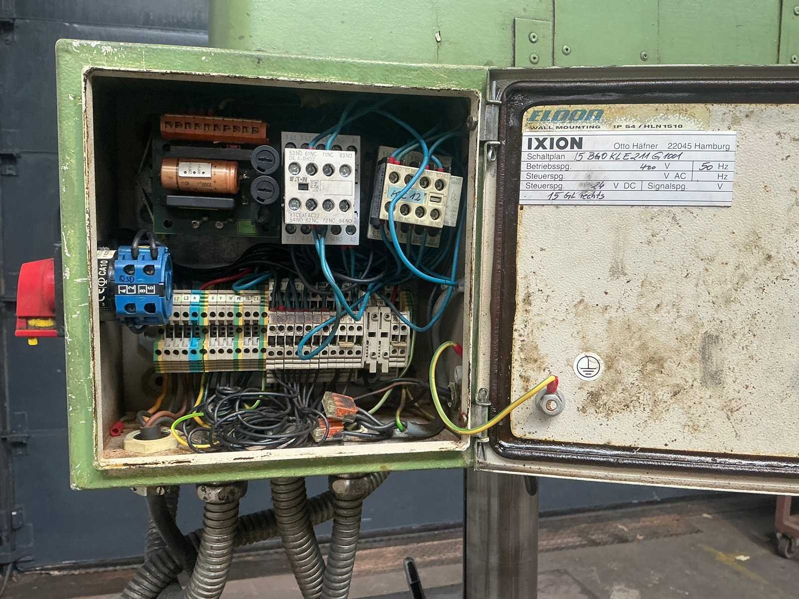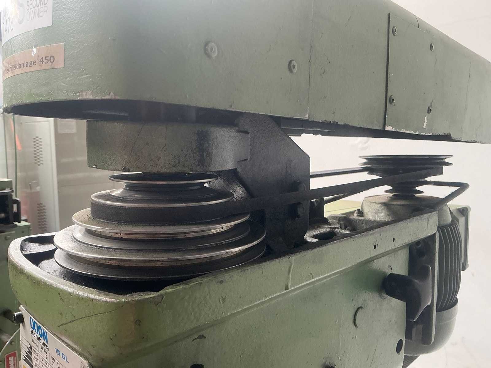 Tapping machine, drilling and tapping No Merk: Ixion Type: BT 15 GL Serienummer: 132832 Spindelsnelheid van n =: 320rpm Spindelsnelheid tot n =: 1600rpm Tafel afmeting l: 290mm Tafel afmeting b: 225mm Motorvermogen (kW): 0.6kW Machinegewicht: 150kg Afmeting l: 1250mm Afmeting b: 800mm Afmeting h: 1600mm GS Code: 84.592.900