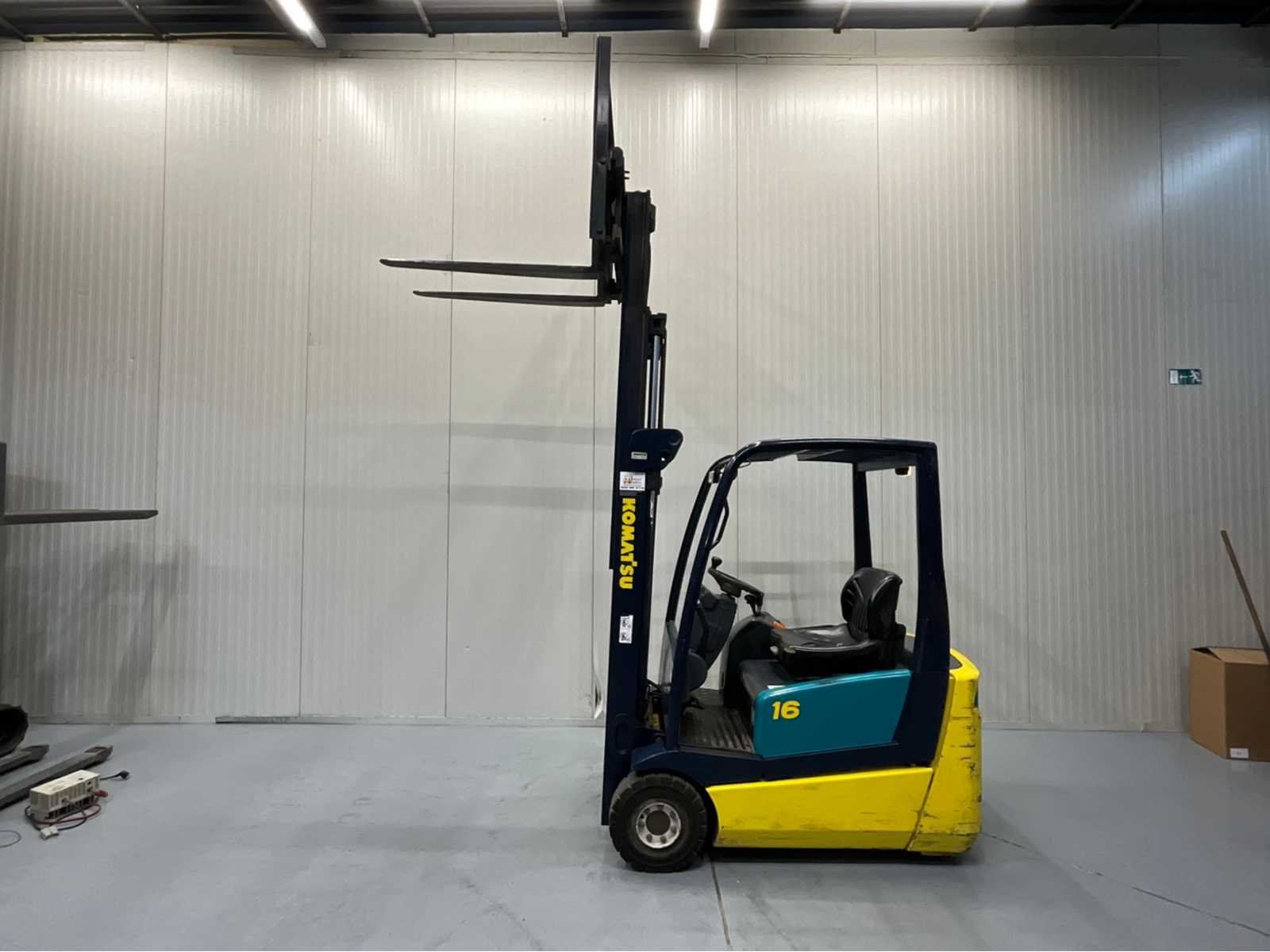 Wit licht achter en voor, acculader Nee Merk: Komatsu Brandstof: Elektrisch Mast: Triple Soort band: Volrubber banden Aantal wielen: 4 Afgelezen urenstand: 2193 Accu lader: true Free-lift: true Side-shift: true Triple mast: true Hefvermogen: 1600kg Lepellengte: 1070mm Max. hefhoogte: 4550mm Hefhoogte: 4550mm Vol rubber banden: true Minimale doorrijhoogte: 2060mm Totale afmeting L: 3000mm Totale afmeting Breedte: 1140mm Totale afmeting Hoogte: 2060mm