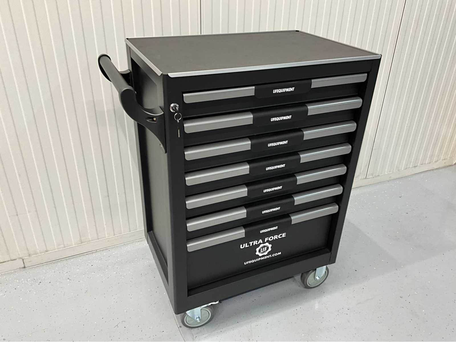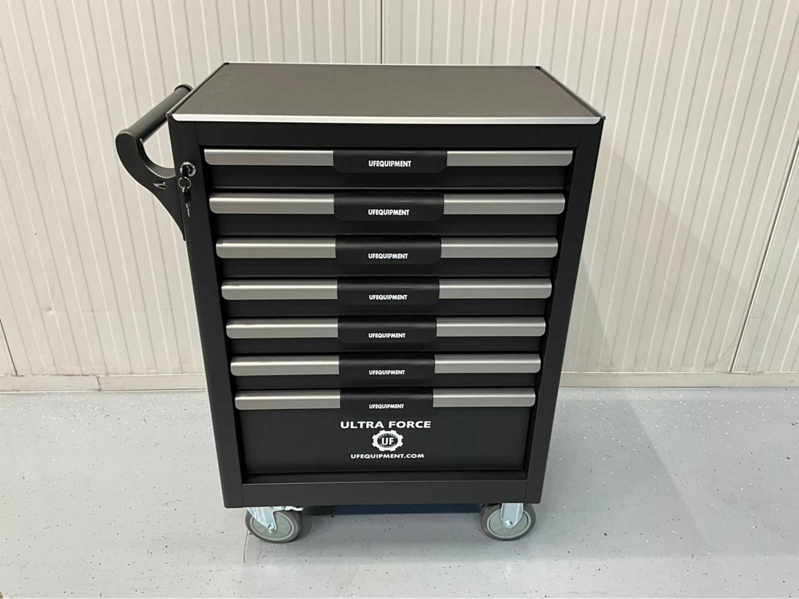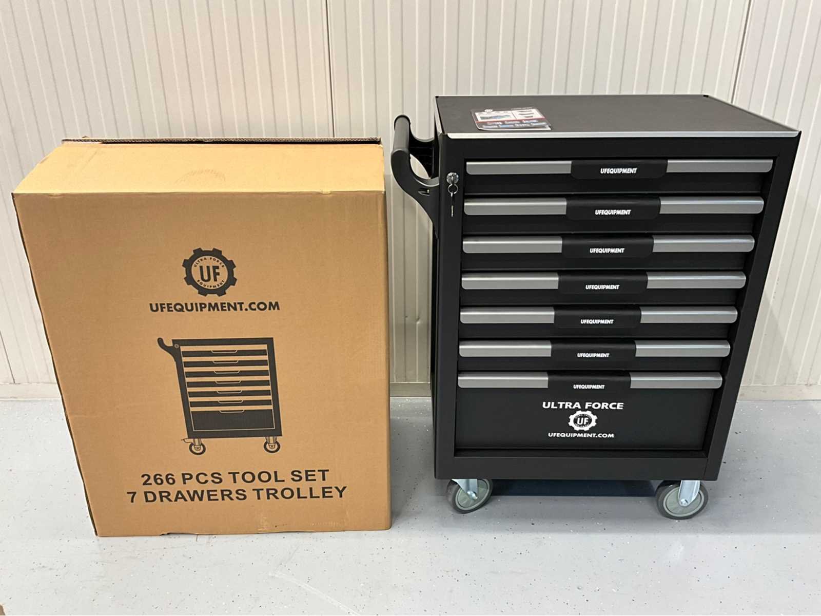 Professionele gereedschapswagen, 7 laden gevuld met 266 pcs gereedschap. 2 sleutels. Nee Merk: Ultra Force Equipment Kleur: . Gewicht: 72kg Lengte: 70cm Breedte: 48cm Hoogte: 101cm