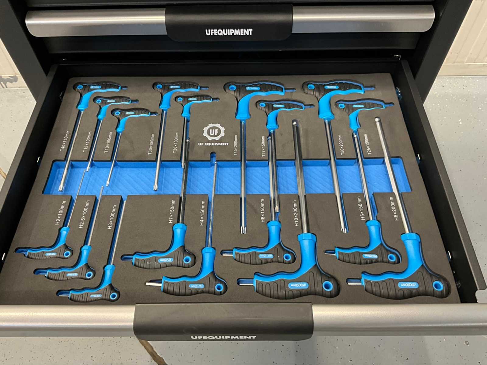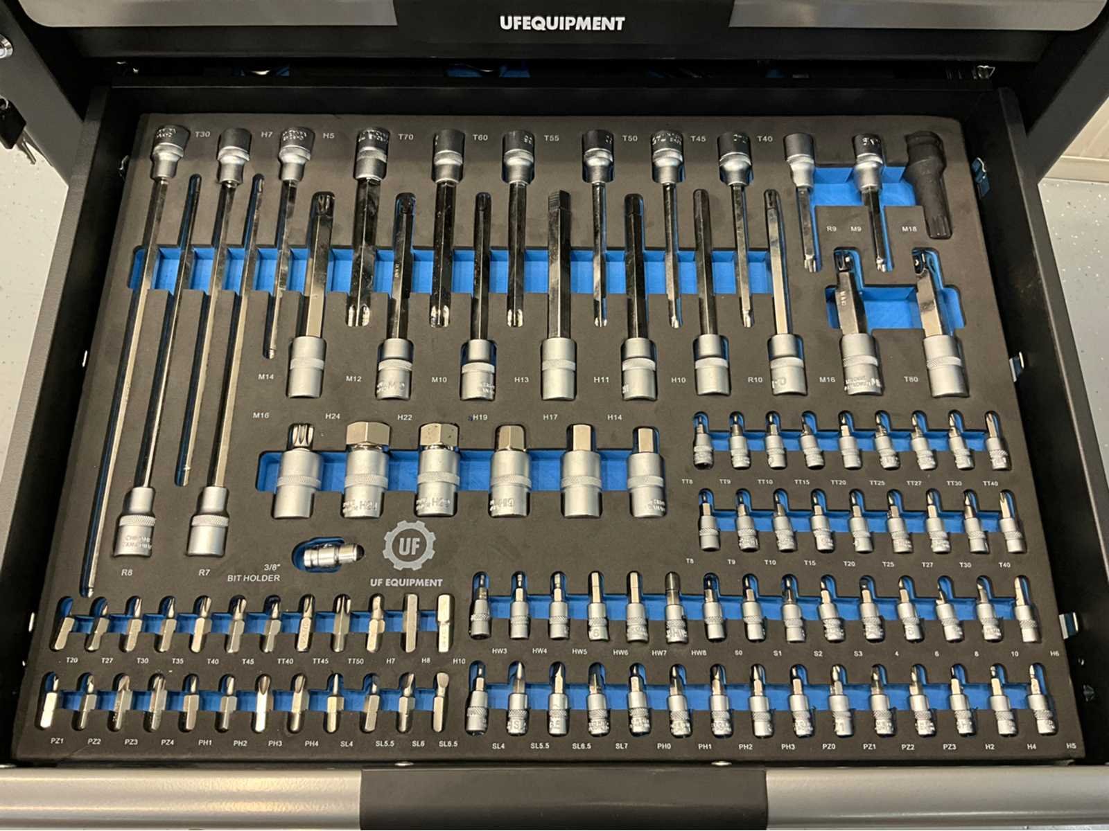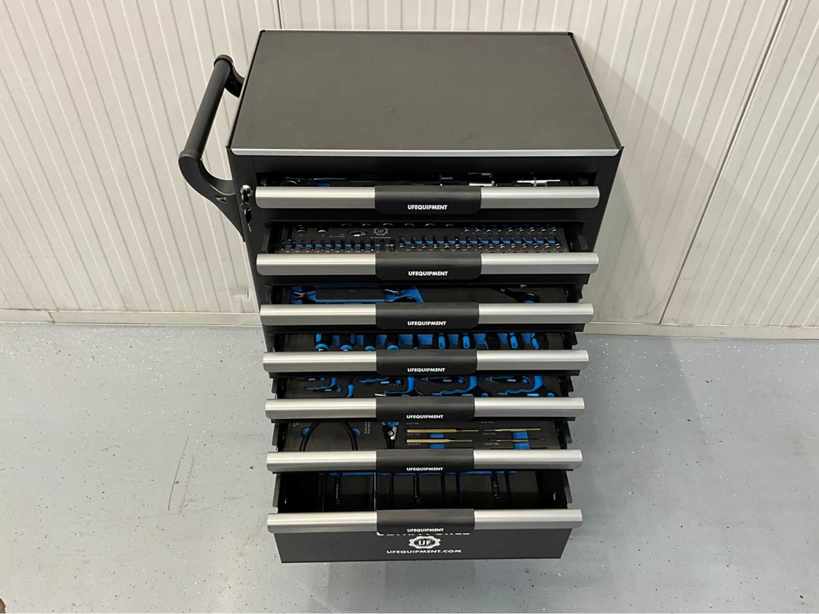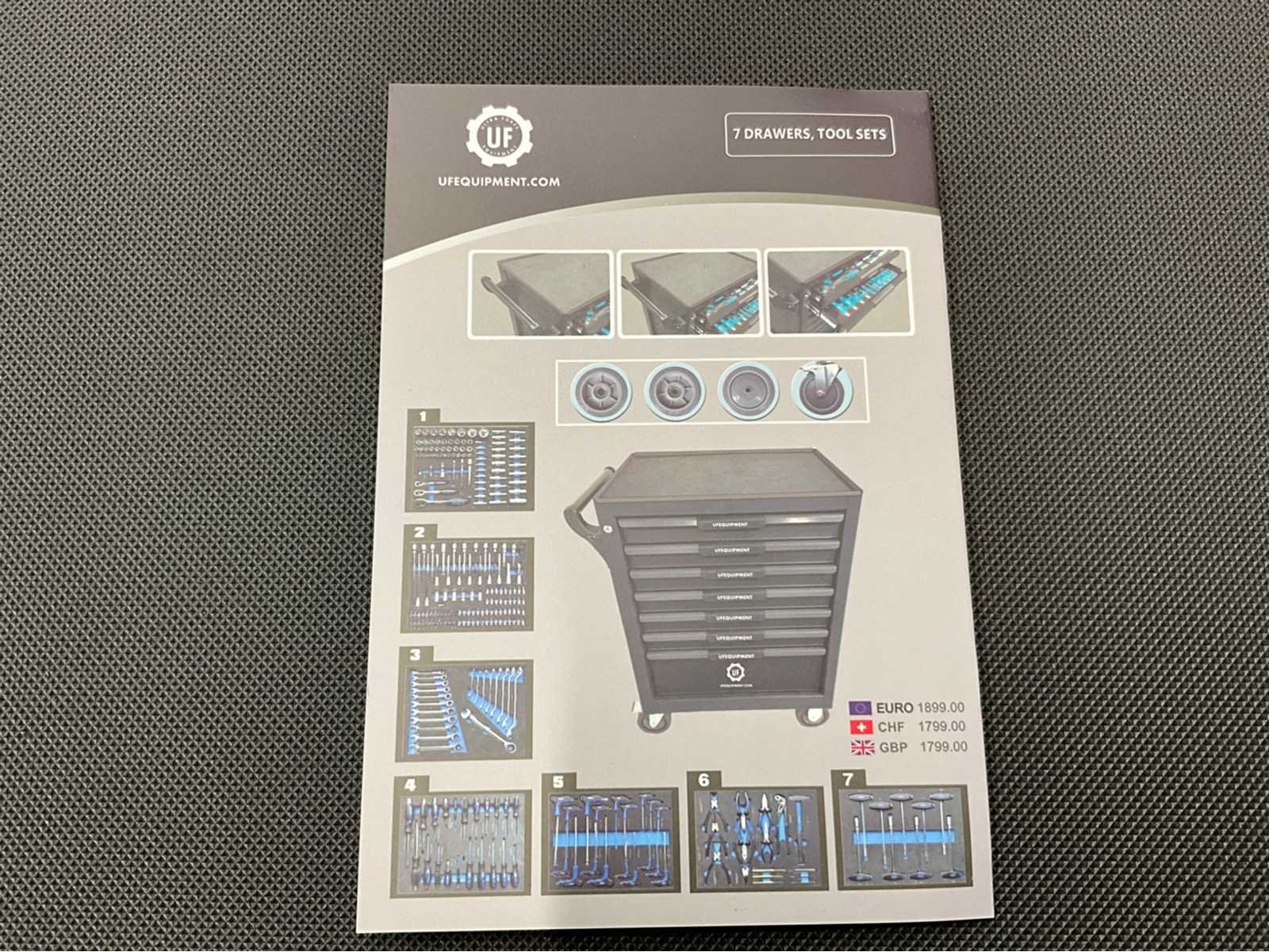 Professionele gereedschapswagen, 7 laden gevuld met 266 pcs gereedschap. 2 sleutels. Nee Merk: Ultra Force Equipment Kleur: . Gewicht: 72kg Lengte: 70cm Breedte: 48cm Hoogte: 101cm