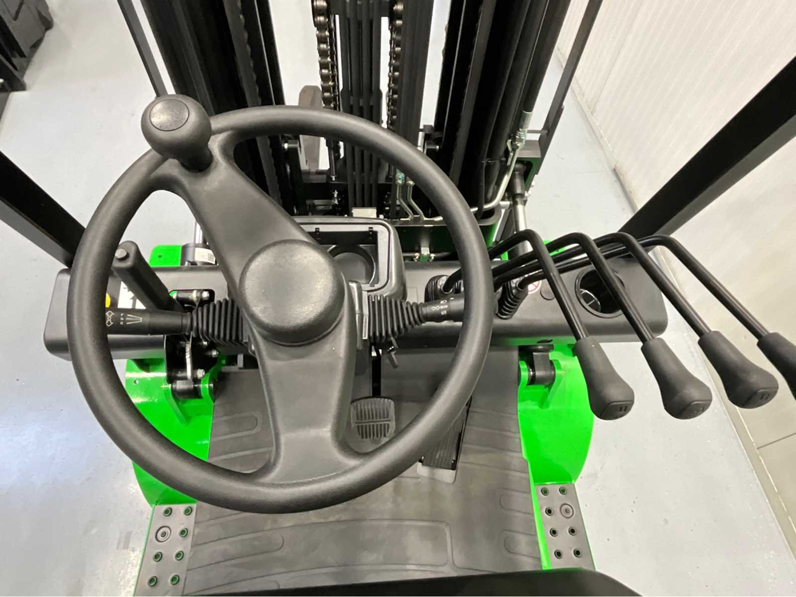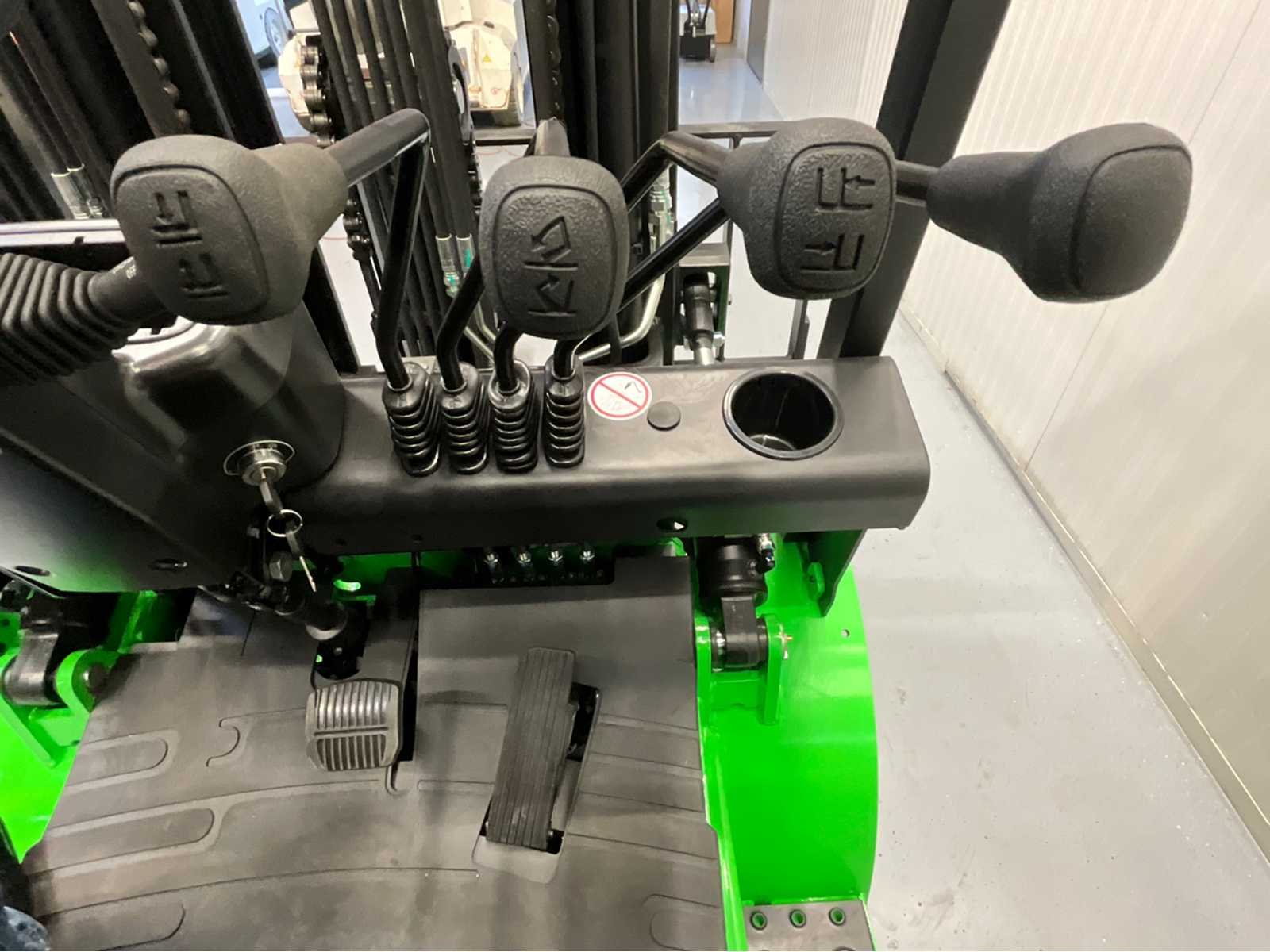 De EP EFXZ-251 Greenline is een krachtige en moderne elektrische heftruck die uitblinkt in prestaties, betrouwbaarheid en gebruiksgemak. Met een hefvermogen van 2500 kg en een grote lithiumaccu van 280Ah is deze heftruck perfect geschikt voor intensief dagelijks gebruik in magazijnen en industriële omgevingen. Dankzij de triplex mast met freelift bereikt de truck een hefhoogte tot 4,80 meter, ideaal voor werken in lage doorgangen zonder concessies te doen aan het hefbereik. De geïntegreerde side-shift en 4e vrije functie zorgen voor maximale flexibiliteit bij het werken met aanbouwdelen. Op het gebied van veiligheid en comfort is deze heftruck zeer compleet uitgerust met LED-verlichting rondom, een bluespot, een zwaailamp en een overzichtelijk display. De interne 220V lader maakt opladen eenvoudig: inpluggen en klaar. Specificaties & uitrusting Hefvermogen: 2500 kg NIEUW – Greenline uitvoering Lithium accu: 280Ah (grote capaciteit) Triplex mast met freelift Hefhoogte: 4.800 mm Geïntegreerde side-shift 4e vrije hydraulische functie LED-verlichting rondom + bluespot Zwaailamp Ingebouwde 220V stekker / interne lader Duidelijk functiescherm (display) Nee Merk: EP Type: EFXZ-251 Bouwjaar: 2025 Brandstof: Elektrisch Mast: Triplex Aantal wielen: 4 Accu lader: true Free-lift: true Side-shift: true Triple mast: true Eigen gewicht: 4094kg Hefvermogen: 2500kg Lepellengte: 1150mm Max. hefhoogte: 4800mm Hefhoogte: 4800mm Vol rubber banden: true Minimale doorrijhoogte: 2300mm Totale afmeting L: 3400mm Totale afmeting Breedte: 1100mm Totale afmeting Hoogte: 2300mm