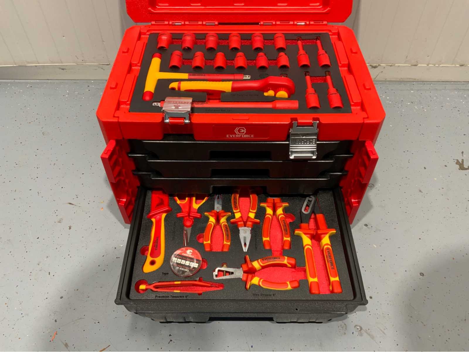Elk stuk gereedschap is gecertificeerd - 55 pcs. Gekeurd voor 1000V, geschikt voor krachtstroom. product maat 50,7x32,9x33,1 cm verpakkingsmaat 52x35x34,5cm Nee Merk: Everforce Type: Elektra gereedschap Bouwjaar: 2026 Delig: 55 Met koffer: true