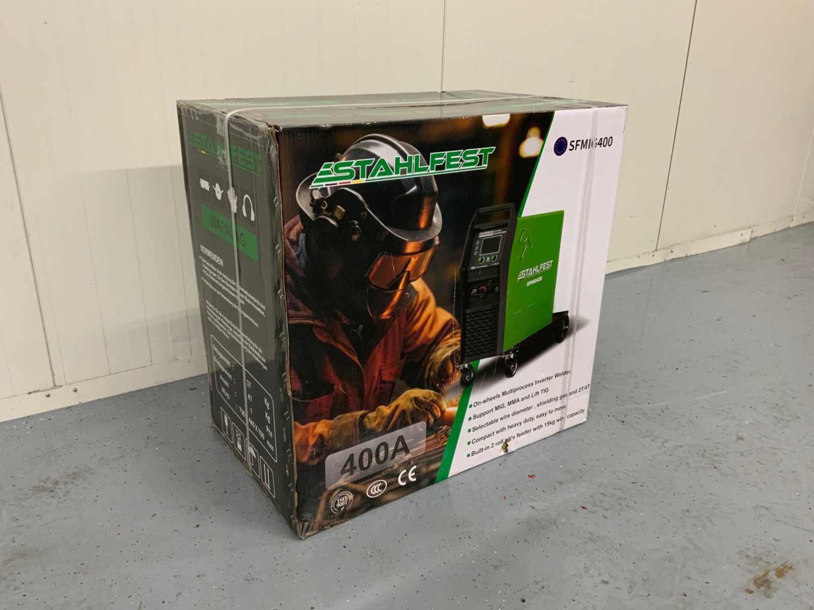 Nominale ingangsspanning: 3P AC380V ±15% 50/60Hz Nominale inschakelduur: 40% Efficiëntie: 85% Isolatieklasse: F Beschermingsklasse: IP21 Gewicht: 43 kg Insulatiewaarde: F Beschermings waarde: IP21 MIG TIG MMA - Input power (KVA) 13.8 10.5 11.8 - Input current (A) 21 16 18 - No-load voltage (V) 80V 80V 80V - Output current (A) 40-350 10-350 30-300 - Output voltage (V) 31.5 24 32 Nee Merk: Stahlfest Type: SFMIG-400 Bouwjaar: 2025 Mig type: true Tig type: true Electrode type: true Inverter type: true Ampère belasting: 21A Inschakelduur: 40% Digitale uitlezing: true Aansluiting: 380V Machinegewicht: 43kg Afmeting l: 946mm Afmeting b: 470mm Afmeting h: 755mm