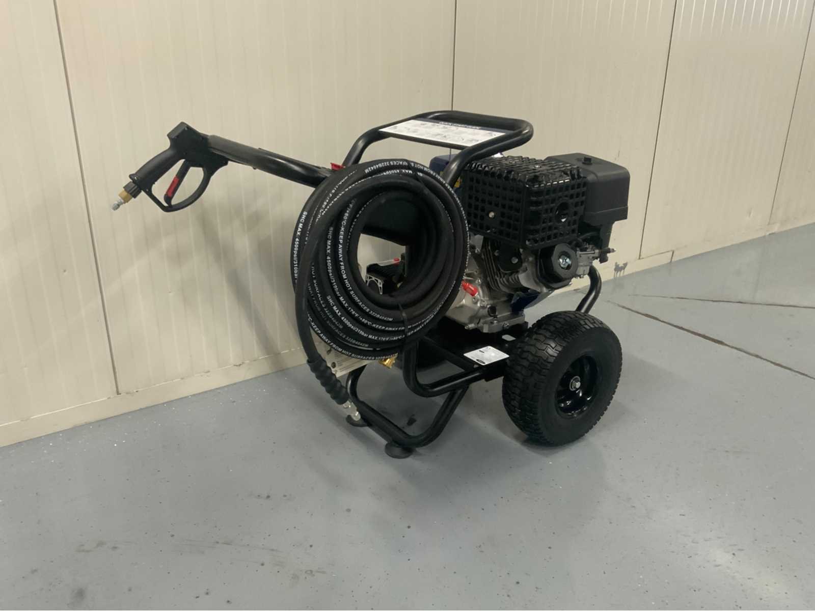 420 CC-motor Nominale druk van 4400 PSI Nominale druk 303 bar 4,0 GPM nominale stroom 4 sproeikoppen 1 zeepmondstuk 15,24M gevlochten hogedrukslang 33 cm Never Flat-banden Ongebruikt. Nee Merk: Ford Type: FPWG44T Bouwjaar: 2026 Maximale werkdruk: 303bar Mobiel: true Eigen gewicht: 72kg Totale afmeting L: 950mm Totale afmeting Breedte: 620mm Totale afmeting Hoogte: 730mm