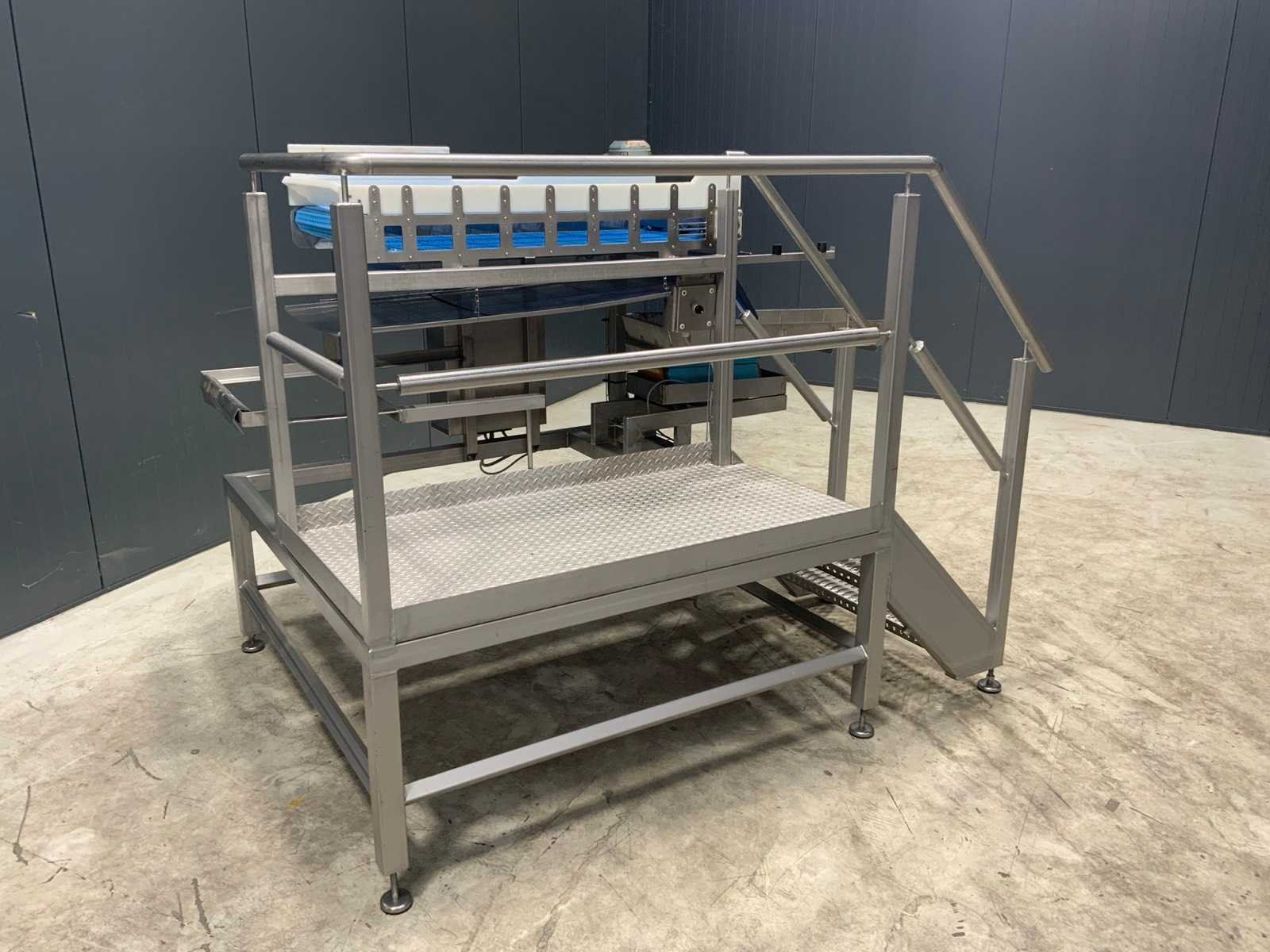 Transportband lengte: 1300mm. Transportband breedte: 510mm. Opstapbordes afmetingen: 2100 x 820 x 1450mm. Opstap hoogte: 650mm. Nee Totale afmeting L: 2500mm Totale afmeting Breedte: 1650mm Totale afmeting Hoogte: 1670mm