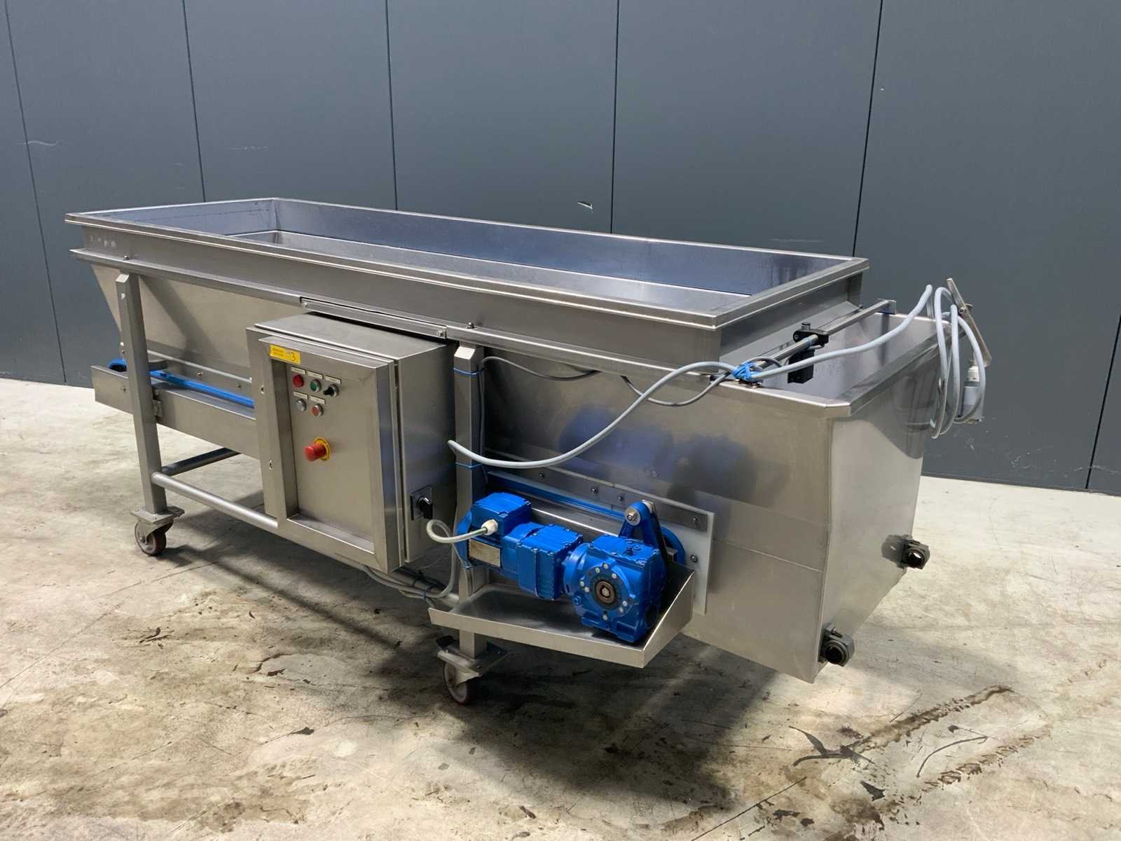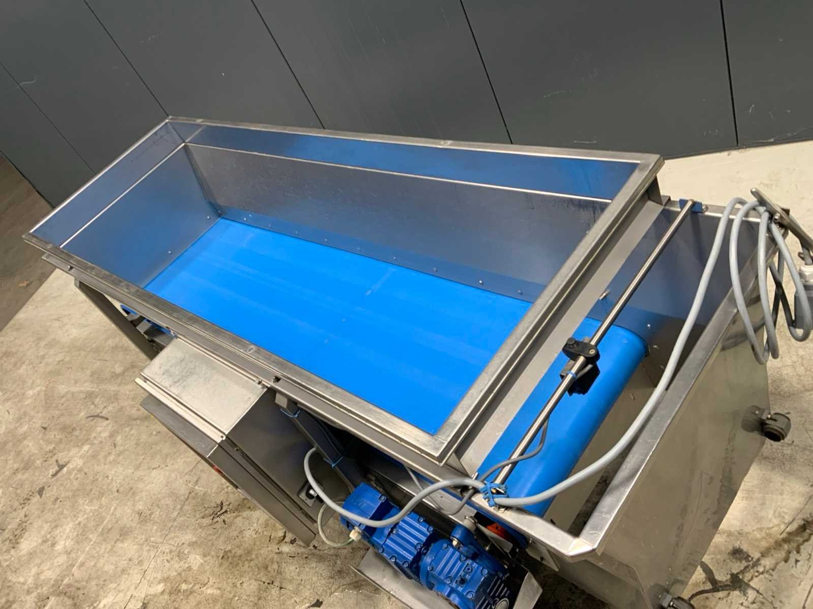 Hoogte transportband: 600mm. Verrijdbaar. Nee Band afm. l: 2500mm Band afm. b: 600mm Totale afmeting L: 2600mm Totale afmeting Breedte: 1600mm Totale afmeting Hoogte: 1100mm