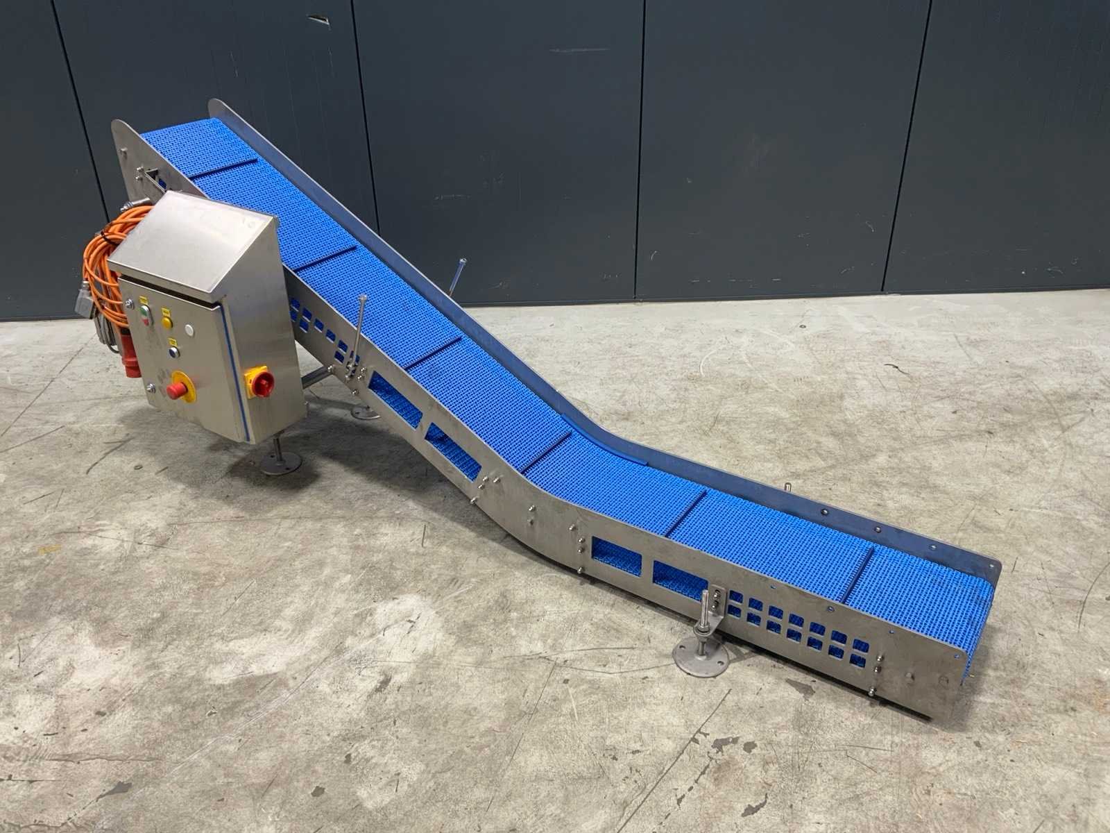 Opvoer hoogte: 870mm. Nee Merk: Kersting Type: Förderband Bouwjaar: 2022 Band afm. l: 2500mm Band afm. b: 300mm Totale afmeting L: 2500mm Totale afmeting Breedte: 700mm Totale afmeting Hoogte: 920mm