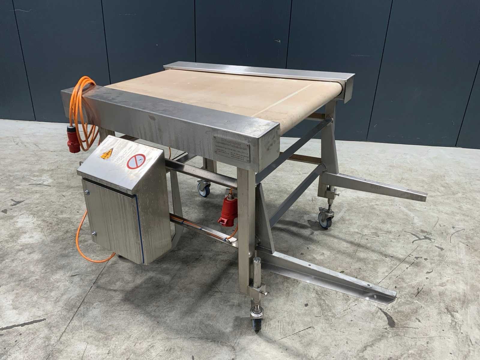 Breedte transportband: 680mm - 950mm. Nee Merk: Schomaker Type: STG-M 600 Band afm. l: 1250mm Band afm. b: 950mm Totale afmeting L: 1500mm Totale afmeting Breedte: 1900mm Totale afmeting Hoogte: 1100mm