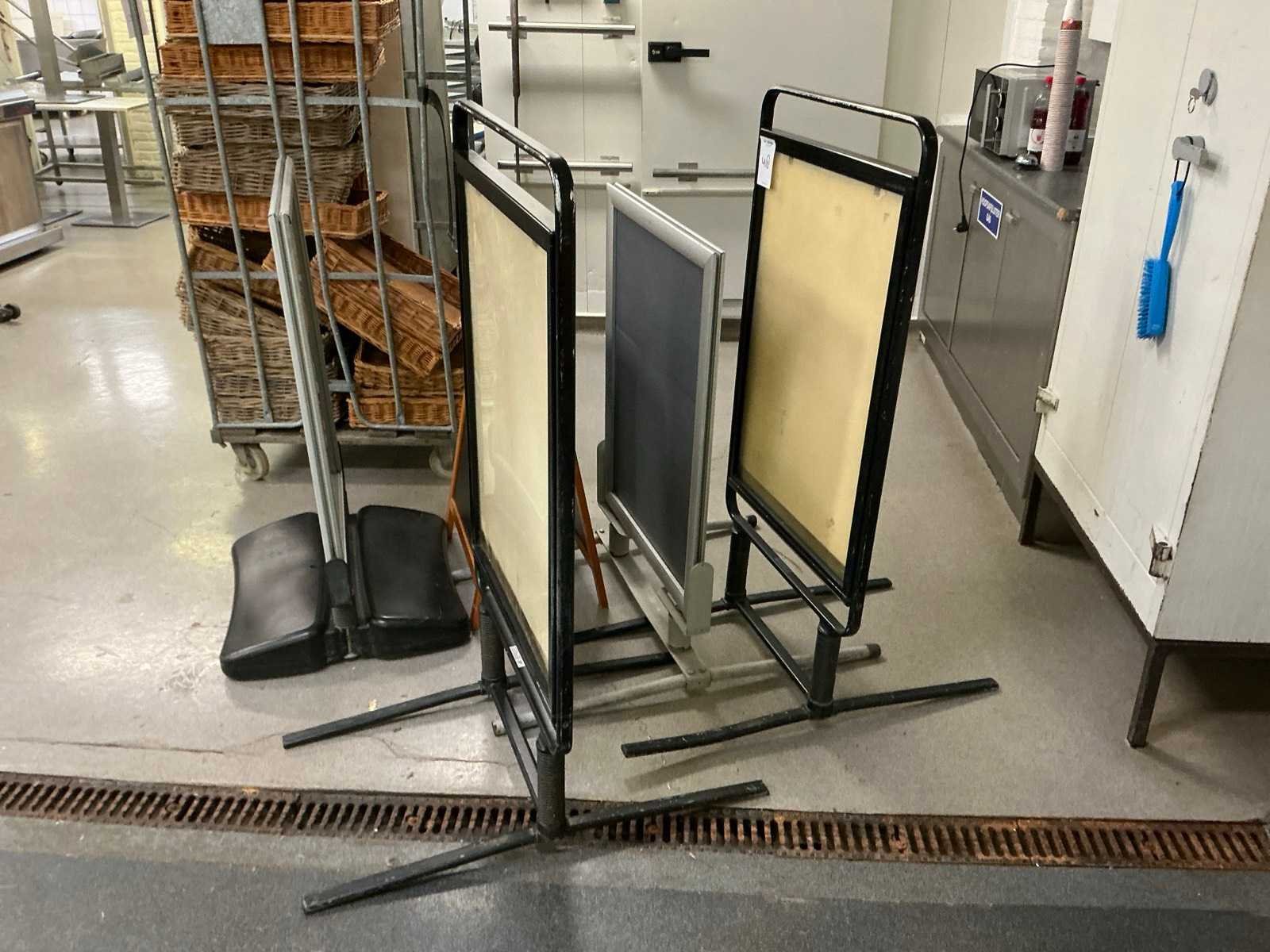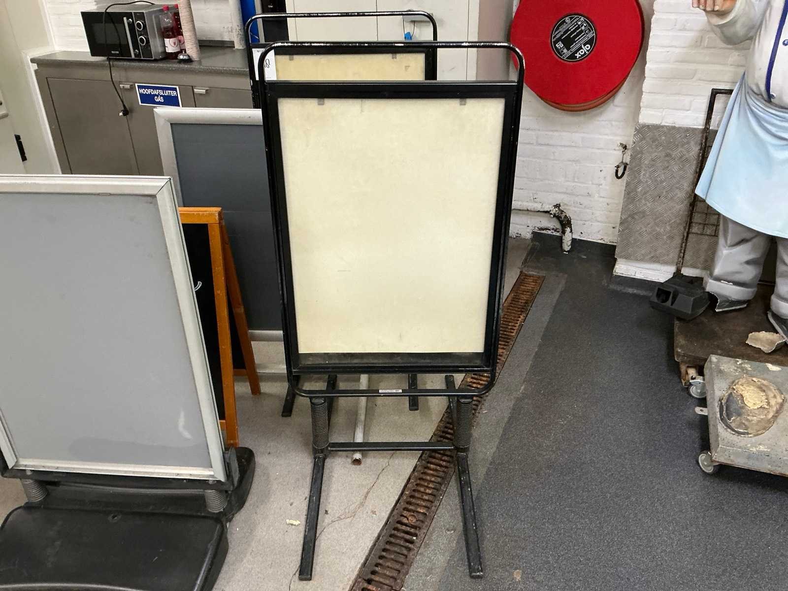 Diverse reklameborden, allen dubbelzijdig ; afmetingen twee grootste zwarte borden = 68x96x136cm LxBxH Nee