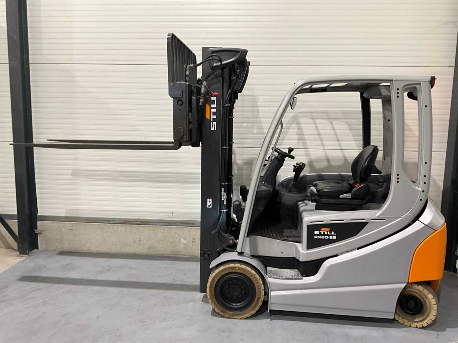 Extra opties : Led verlichting voor en achter , Blue spot , Lepelversteller , elektrische handrem , Nee Merk: Still Type: RX60-25 Bouwjaar: 2020 Serienummer: 516301X00002 Brandstof: Elektrisch Mast: Triple Soort band: Volrubber banden Aantal wielen: 4 Afgelezen urenstand: 6333 Free-lift: true Hydraulisch verstelbare lepels: true Triple mast: true Eigen gewicht: 4911kg Hefvermogen: 2500kg Lepellengte: 1600mm Hefhoogte: 5390mm Vol rubber banden: true Totale afmeting L: 4060mm Totale afmeting Breedte: 1200mm Totale afmeting Hoogte: 2460mm