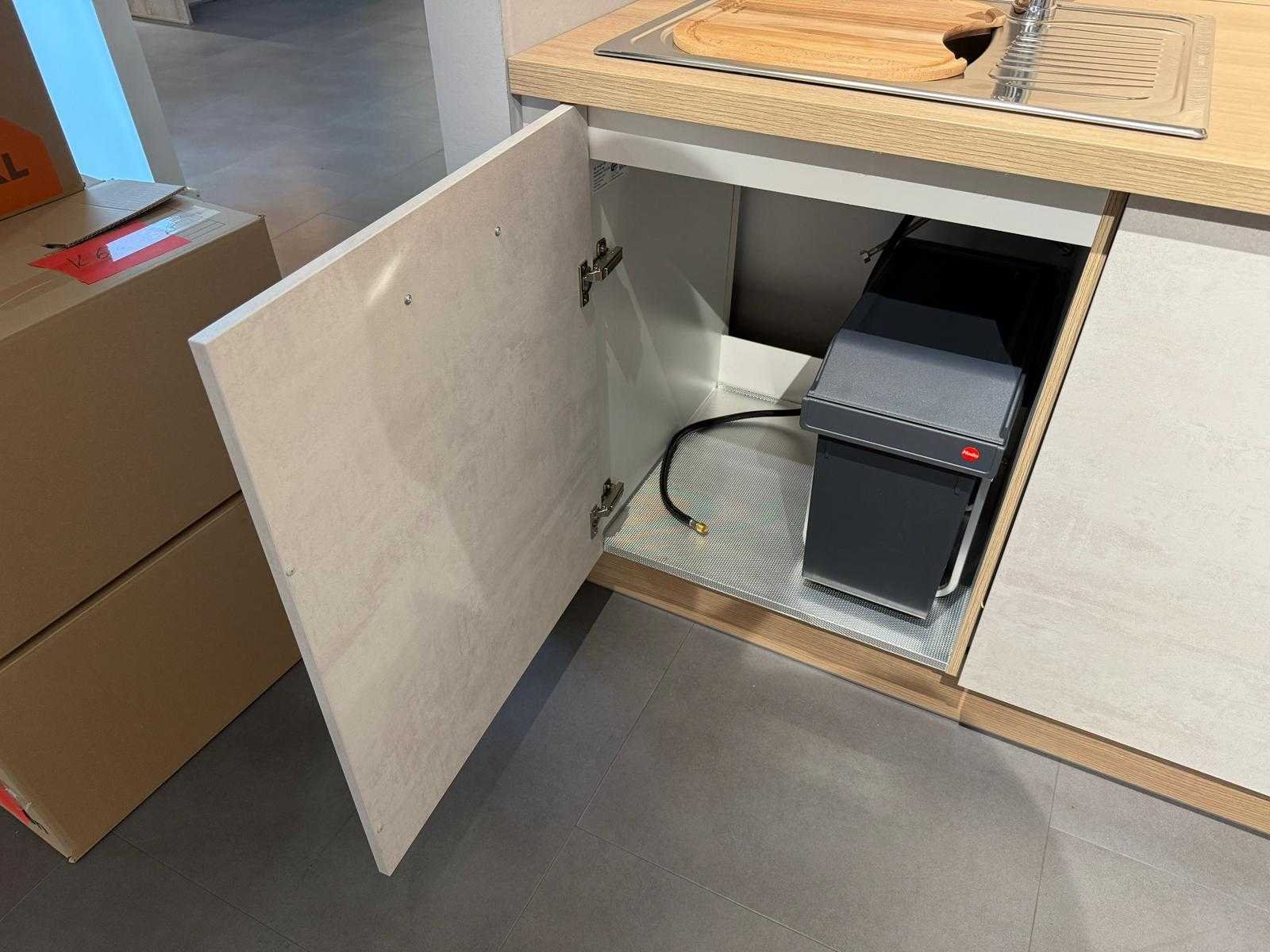 Reeds gedemonteerd en ingepakt op pallets. (afstapelen, omruilen of statiegeld per pallet); pallets zijn niet inbegrepen; statiegeld betalen bij afhalen, of pallets afstapelen; werkblad niet ingepakt op pallets (26-IMP-04247) Nee Merk: Impuls Type keukenopstelling: Recht Lengte: 190cm Breedte: 60cm Kraan: Ja Gootsteen: Ja Aanrechtblad: Kunststof eiken Magnetron: Amica EMW13185E Fornuis: Ja Koelkast: PKM KS117UBE Afzuigkap: Ja Vaatwasser: PKM GS6-6F12 Kleur: Betonlook leisteen lichtgrijs