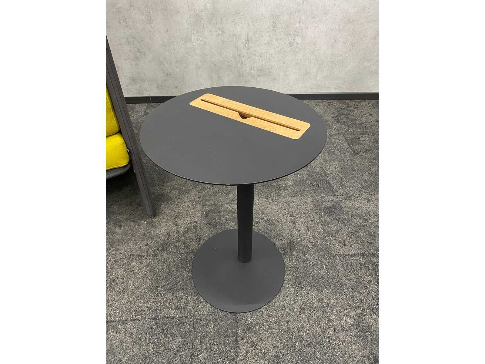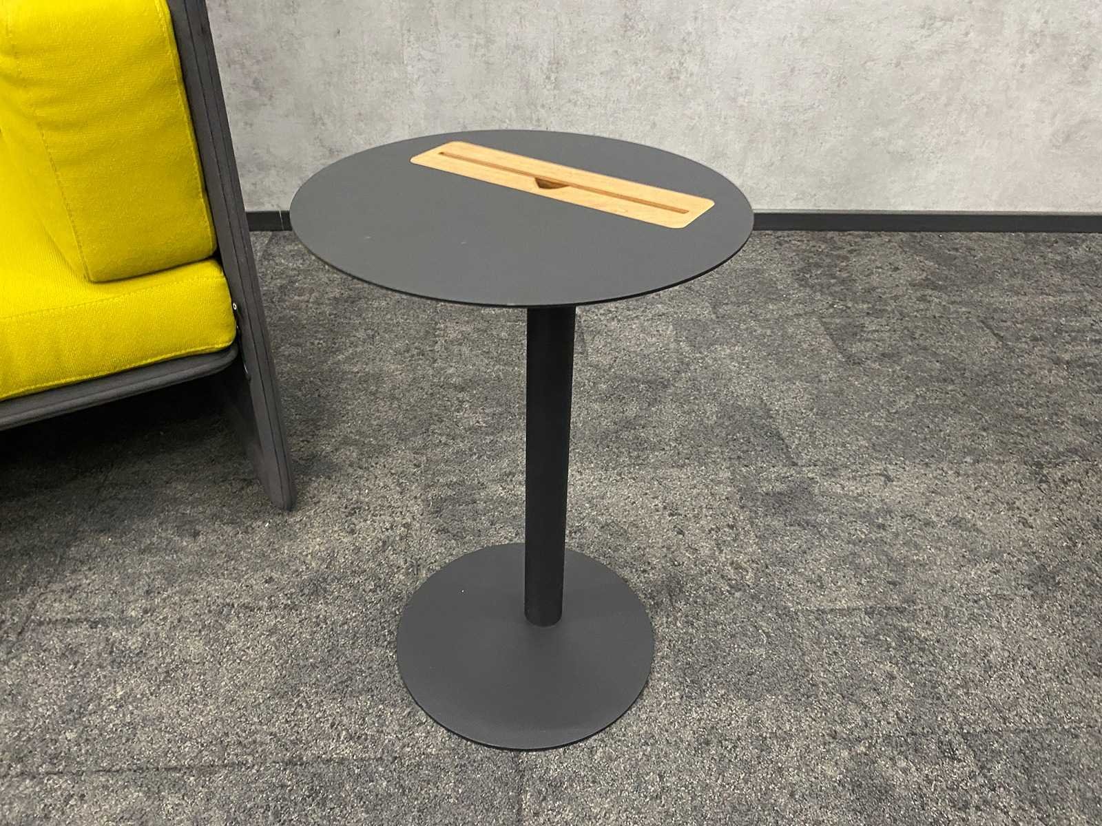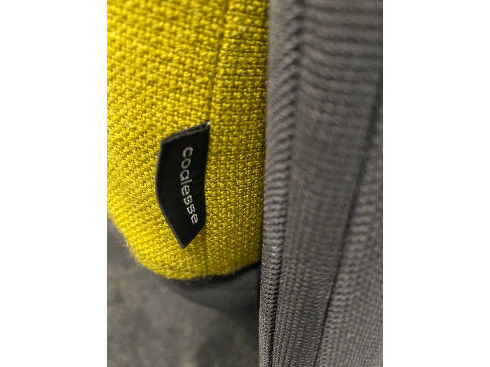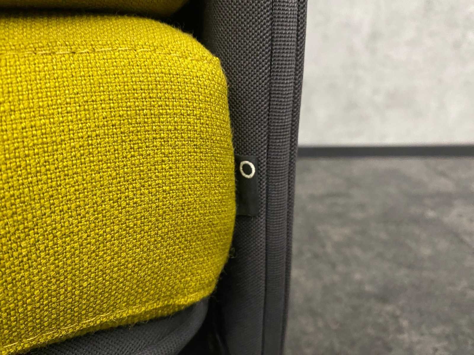 Afm. loveseat ca. hxbxd 127x125x85 cm. v.v. opbouwmodule -- Afm. sidetable ca. hoogte 60 cm. en diameter 40 cm. Nee Merk: Coalesse Lagunitas Kleur: antraciet, lime, zwart