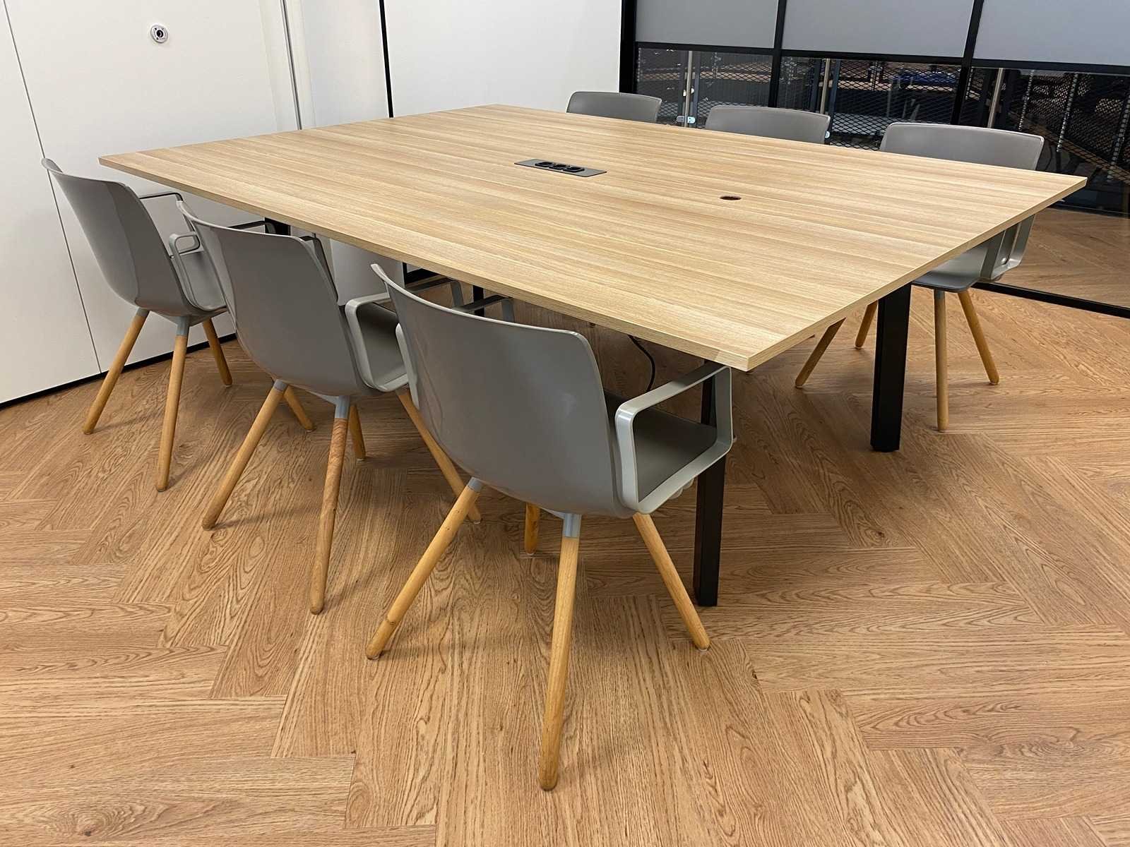 Kavel bestaande uit 6x Gispen Nomi Wood design stoel en 1x conferentietafel v.v. kabeldoorvoer, draadgoot, inbouwmodule. tafel is reeds professioneel gedemonteerd Nee Merk: Gispen Lengte: 220cm Breedte: 160cm Hoogte: 75cm