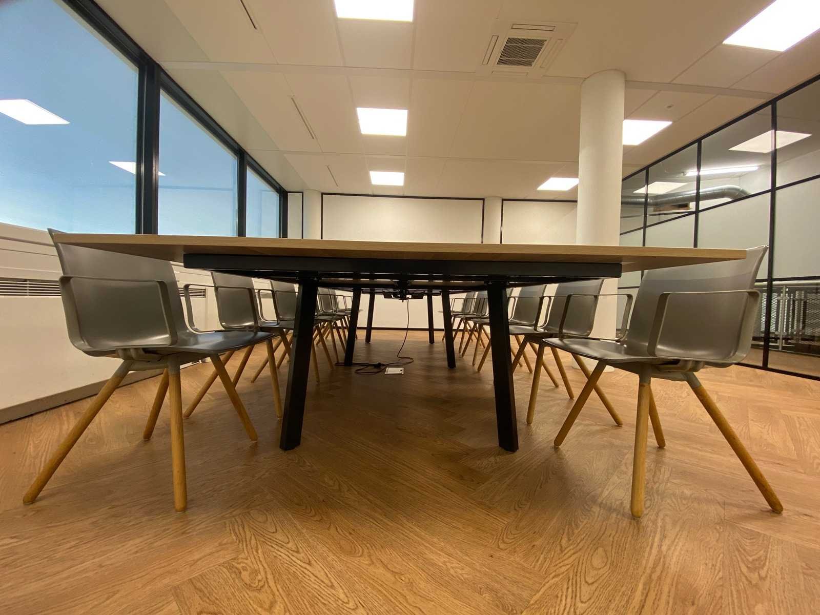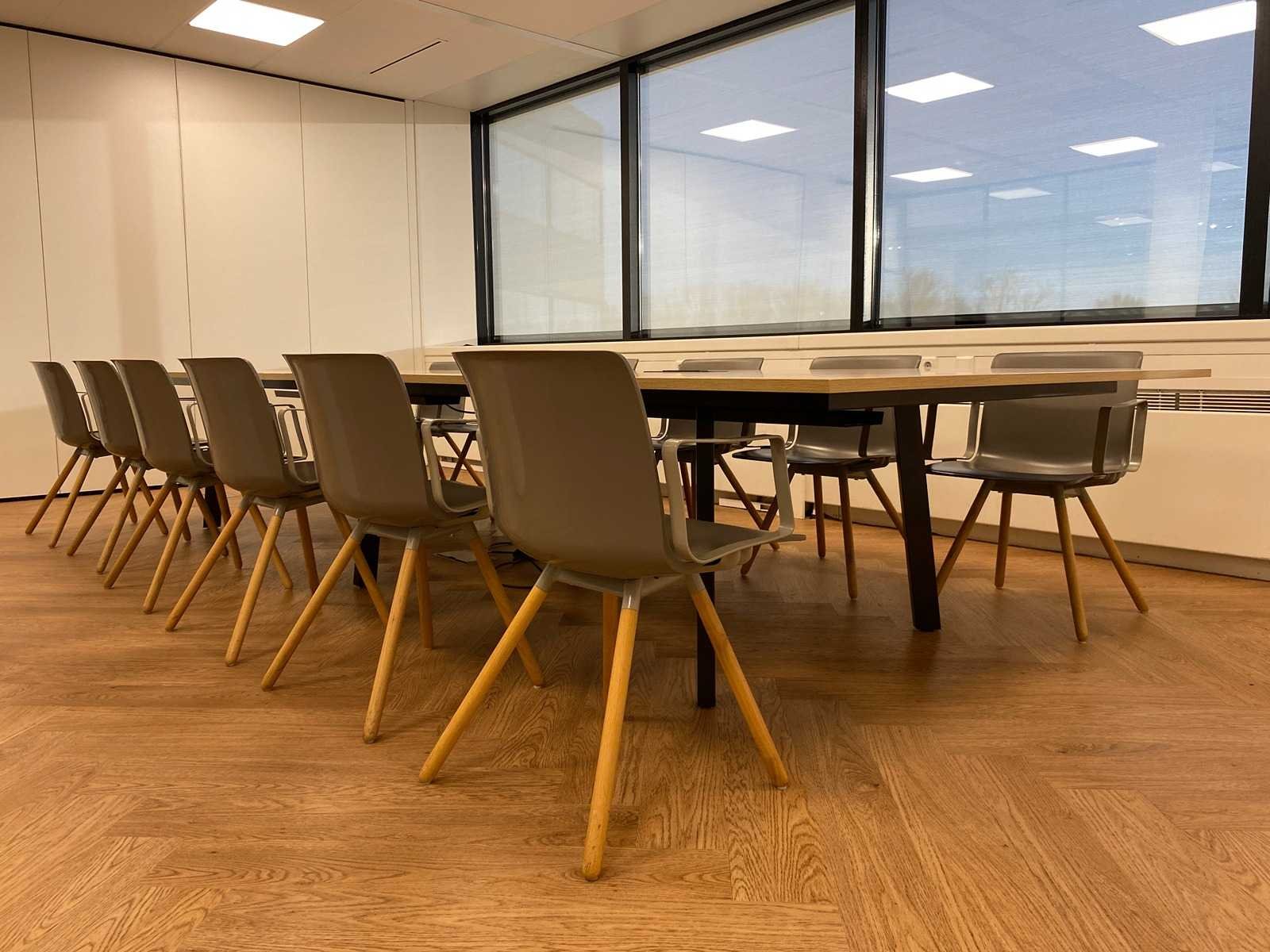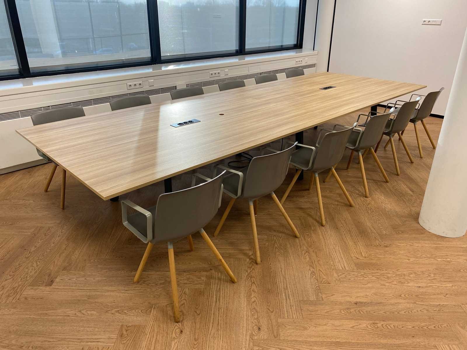 Kavel bestaande uit 12x Gispen Nomi Wood design stoel en 1x conferentietafel v.v. kabeldoorvoer, draadgoot, inbouwmodule. tafel is reeds professioneel gedemonteerd Nee Merk: Gispen Lengte: 450cm Breedte: 160cm Hoogte: 75cm