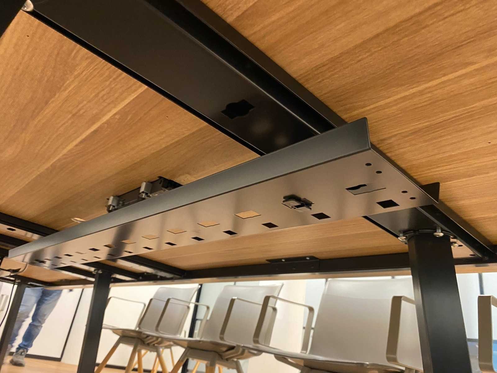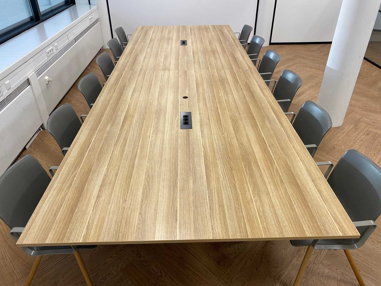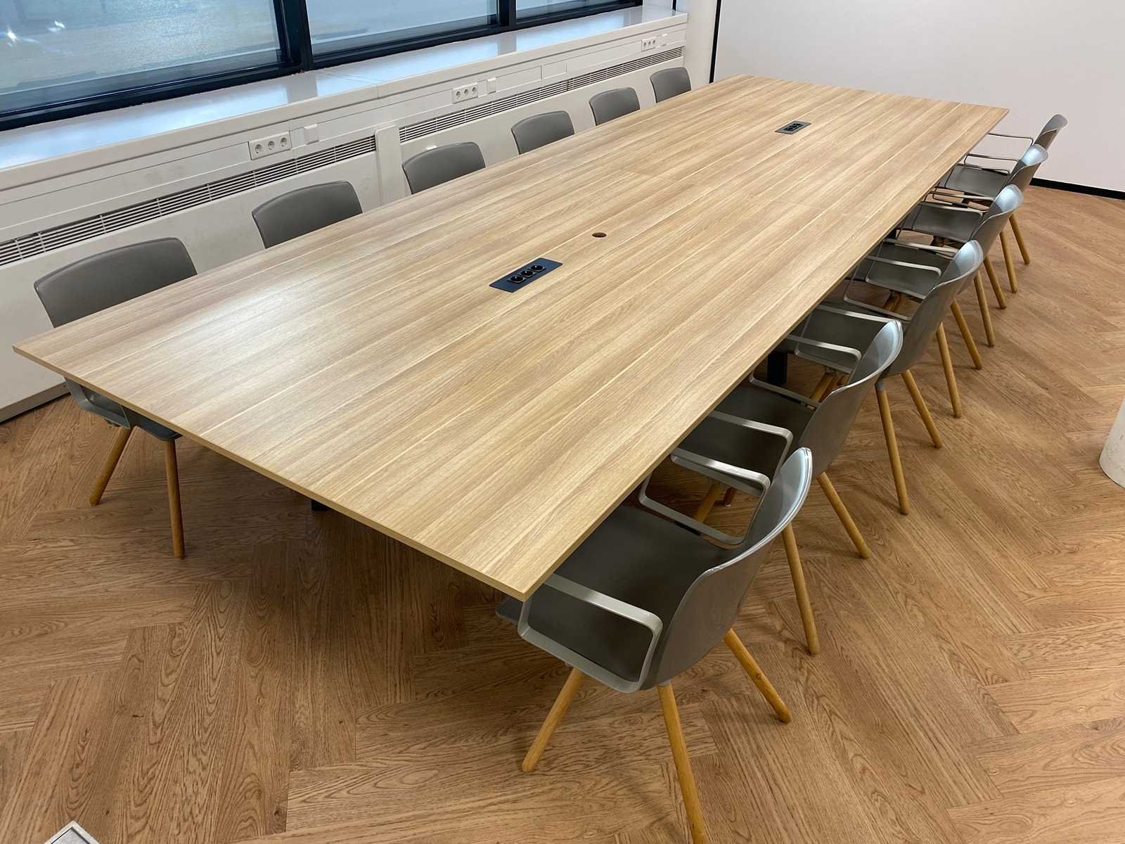 Kavel bestaande uit 12x Gispen Nomi Wood design stoel en 1x conferentietafel v.v. kabeldoorvoer, draadgoot, inbouwmodule. tafel is reeds professioneel gedemonteerd Nee Merk: Gispen Lengte: 450cm Breedte: 160cm Hoogte: 75cm