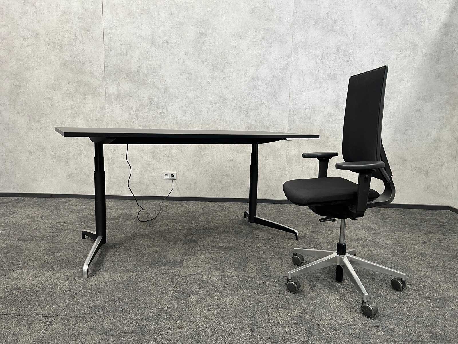 Kavel bestaande uit 1x Holmris design bureau, elektrisch verstelbaar, met geïntegreerde kabelgoot, werkblad hoogte ca. 66 tot 130 cm. ---- 1x Girsberger ergonomische bureaustoel v.v. 4D verstelbare armleggers, zithoogte en zitdiepte instelbaar, rughoogte instelbaar, kantelmechanisme rugleuning. Nee Merk: Genese Holmris/ Girsberger Zit-sta: true Elektrisch verstelbaar: true Kleur: wit, zwart,chroom Lengte: 180cm Breedte: 80cm Hoogte: 130cm
