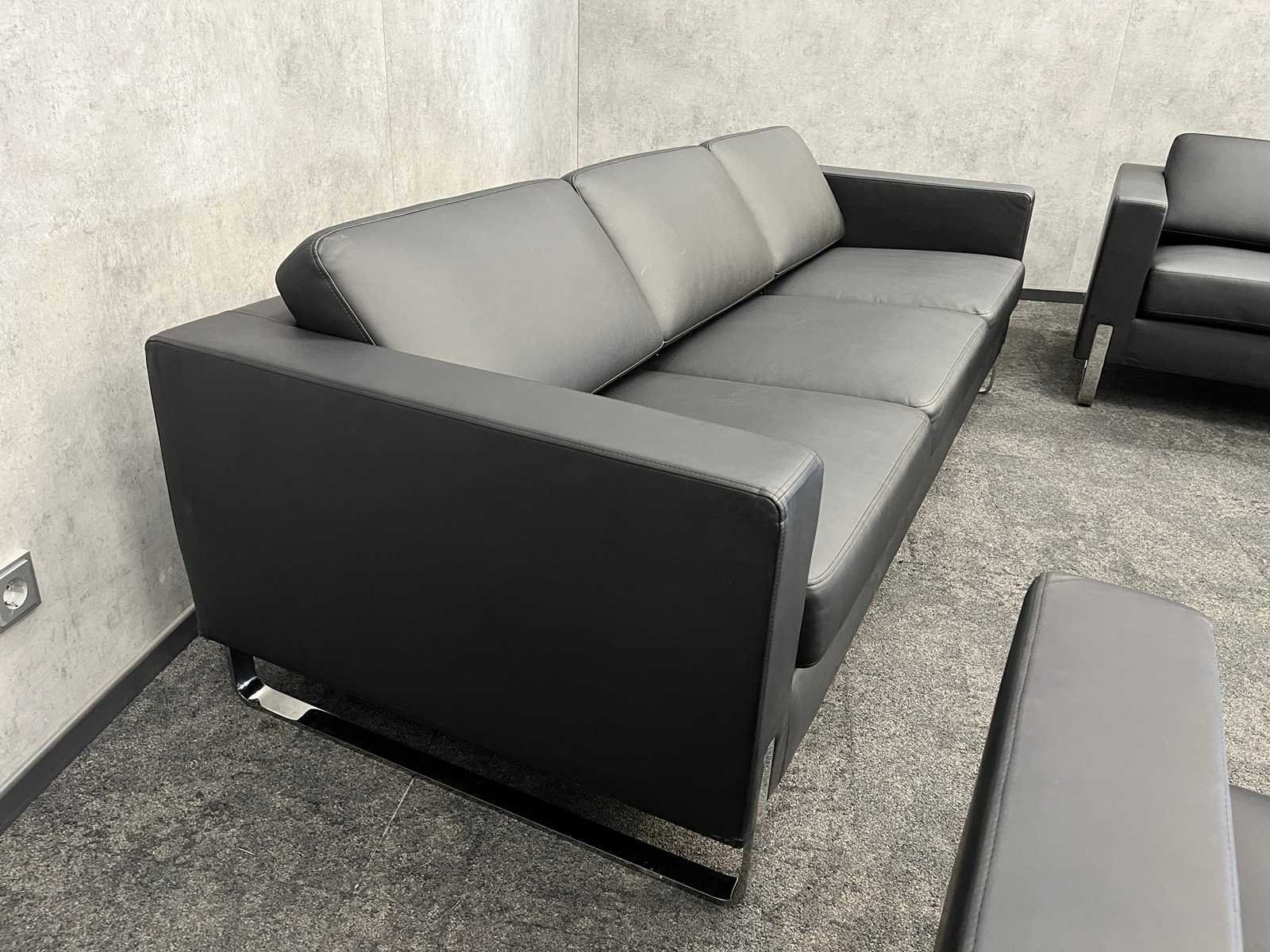 Afm. sofa ca. hxbxd 70x220x85 cm. -- Afm. fauteuil ca. hxbxd 70x90x85 cm. Nee Merk: Profim Kleur: zwart, chroom Zithoogte: 44cm