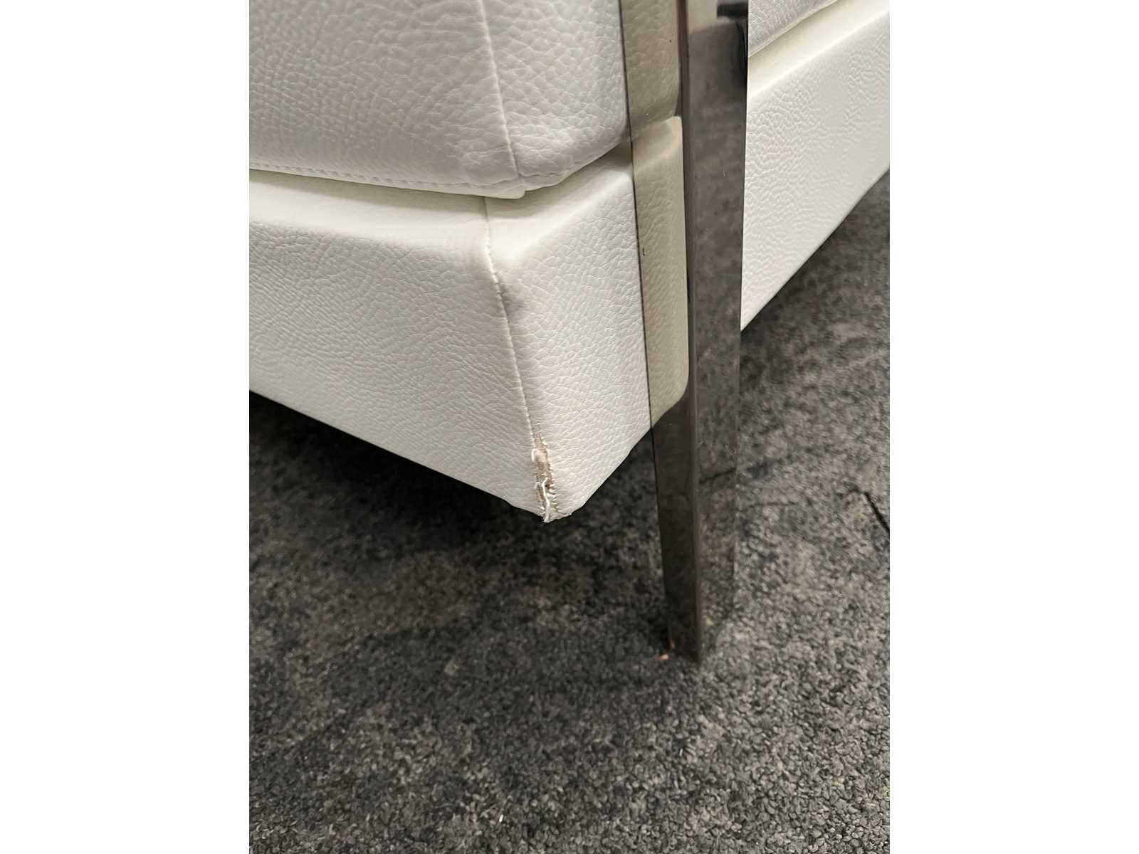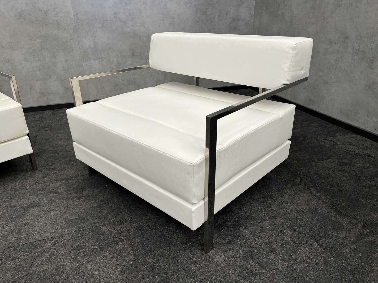 Afm. sofa ca. hxbxd 76x160x80 cm. -- Afm. fauteuil ca. hxbxd 76x94x80 cm. Nee Merk: Noti Ixo Kleur: wit, chroom Zithoogte: 44cm Materiaal: metaal, kunstleer