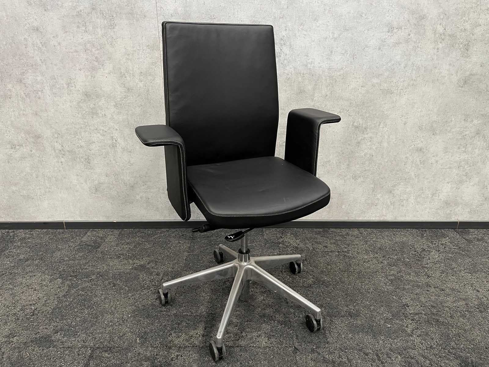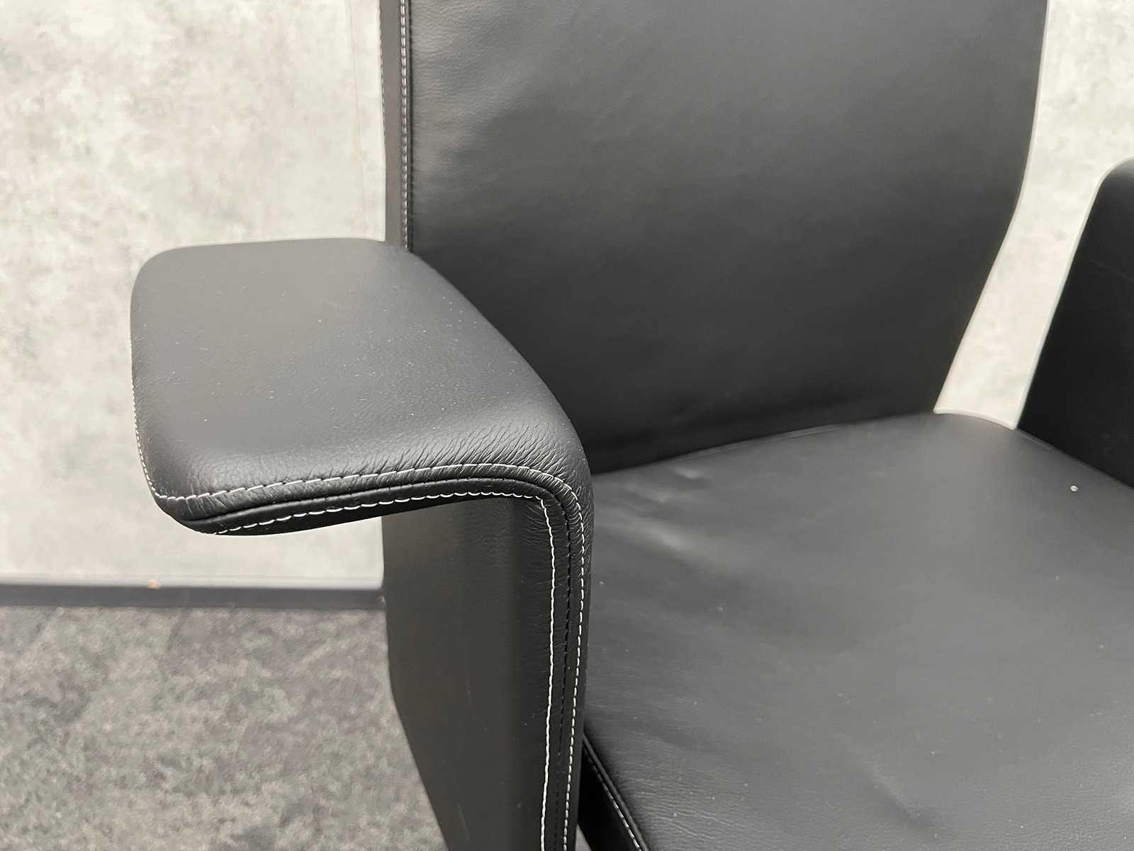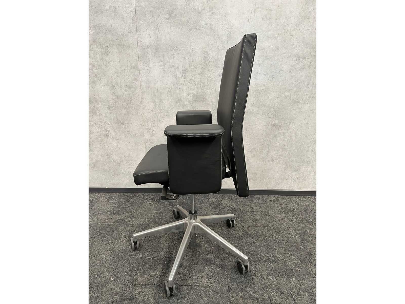 V.v. in hoogte instelbare rugleuning, kantelmechanisme rugleuning, zithoogte en zitdiepte instelbaar, in hoogte instelbare armleggers, chroom 5-teens voetenkruis, zwart kunstlederen bekleding Nee Kleur: zwart, chroom