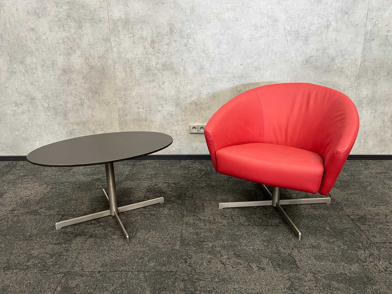 Kavel bestaande uit Amerland kunstlederen draaibare fauteuil. Afm. ca. 76x80x75 cm. zithoogte ca. 42 cm. --- bijpassende salontafel hxbxd 46x80x55 cm. Nee Merk: Amerland